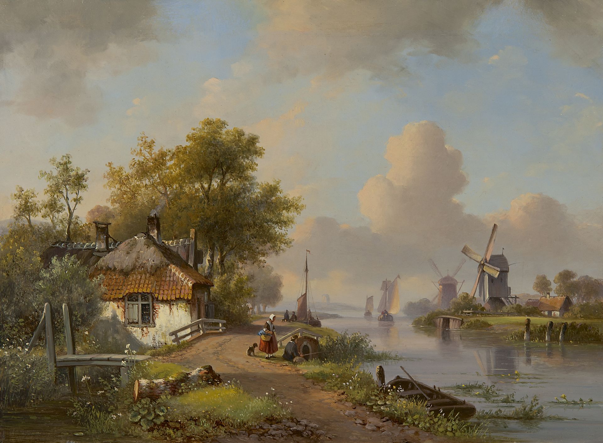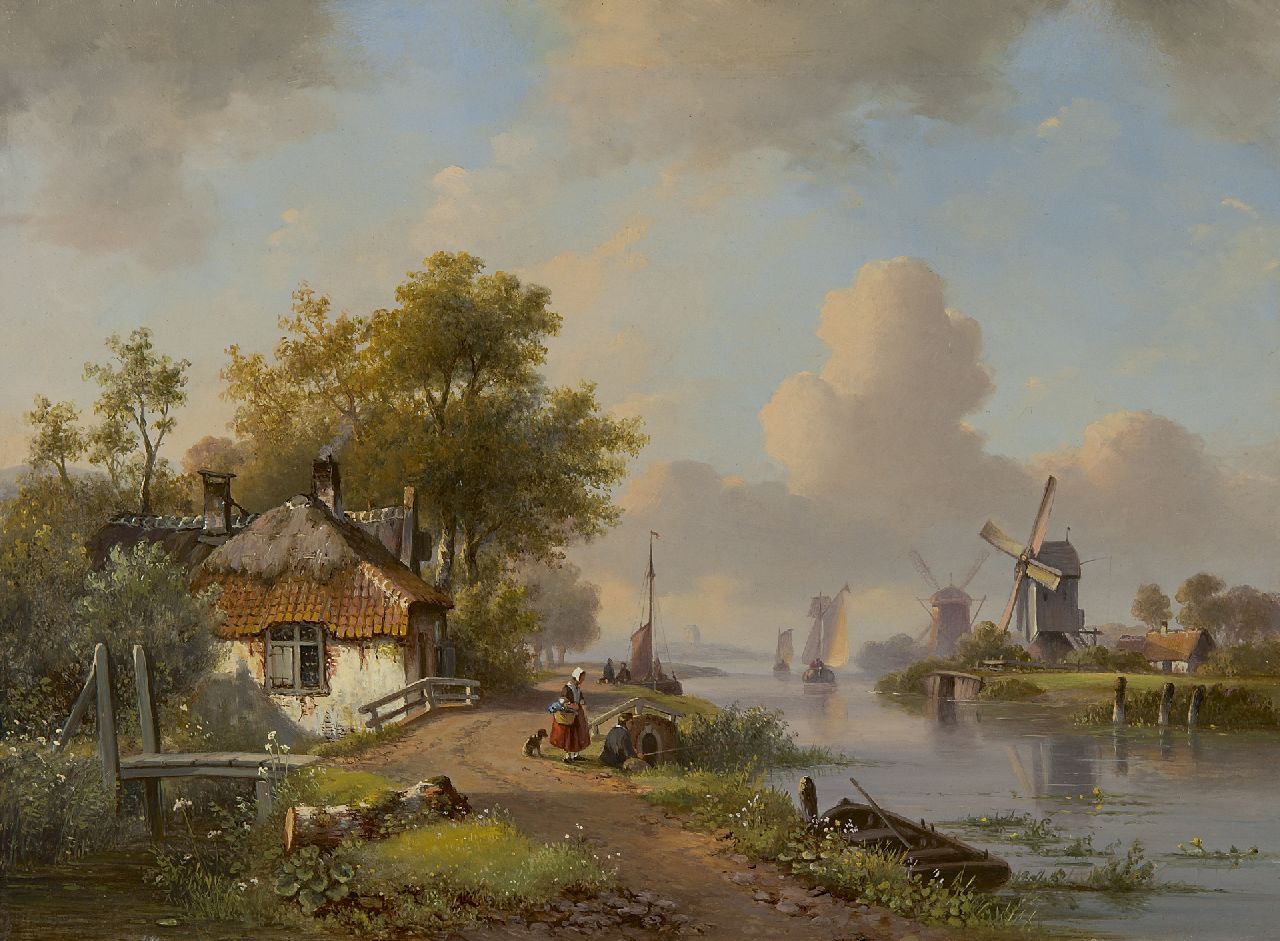 Lodewijk Johannes Kleijn kunstwerk • schilderij • voorheen te koop Zomers riviergezicht
