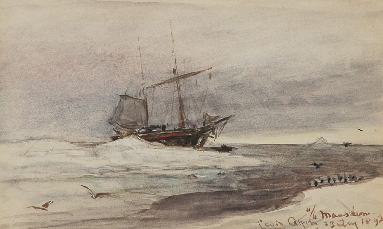Louis Apol kunstwerk • aquarel • tekening • voorheen te koop Aan boord van de Maasdam