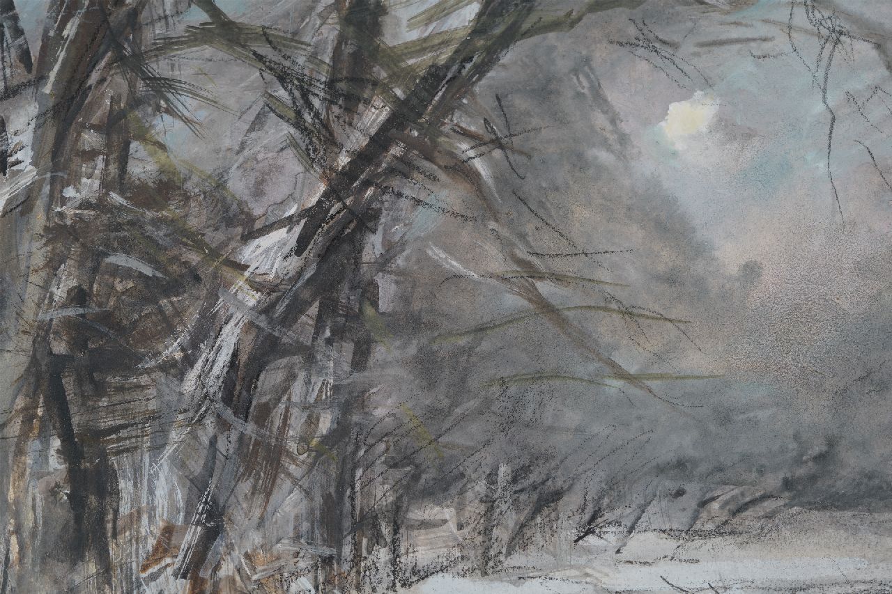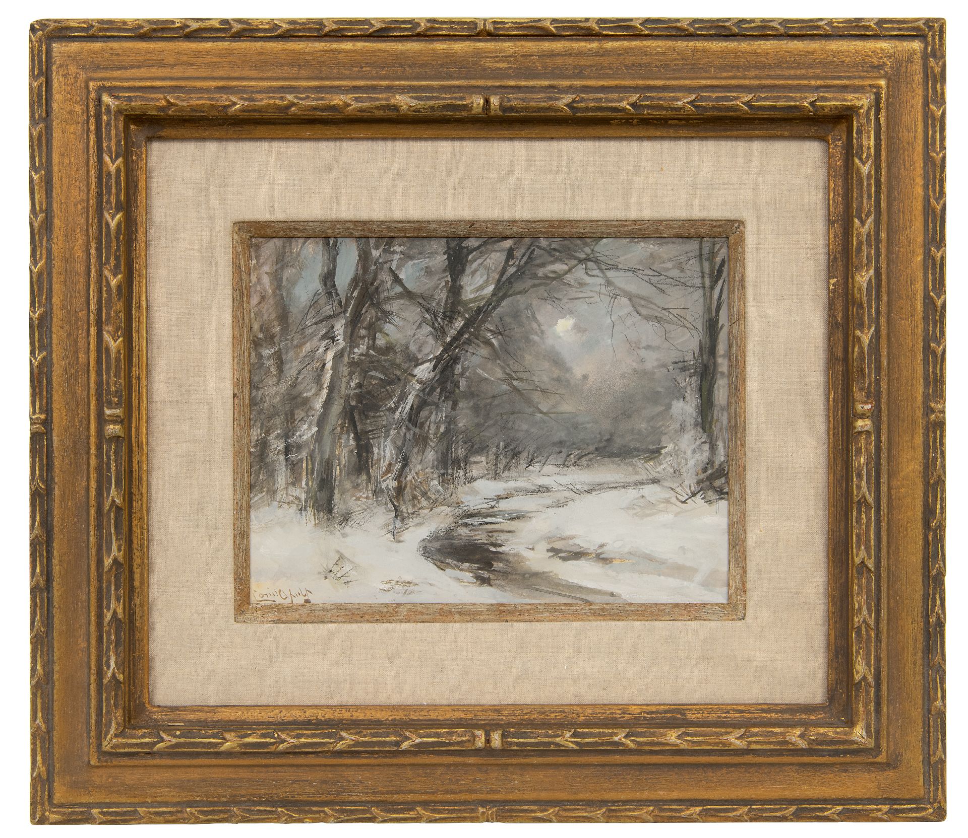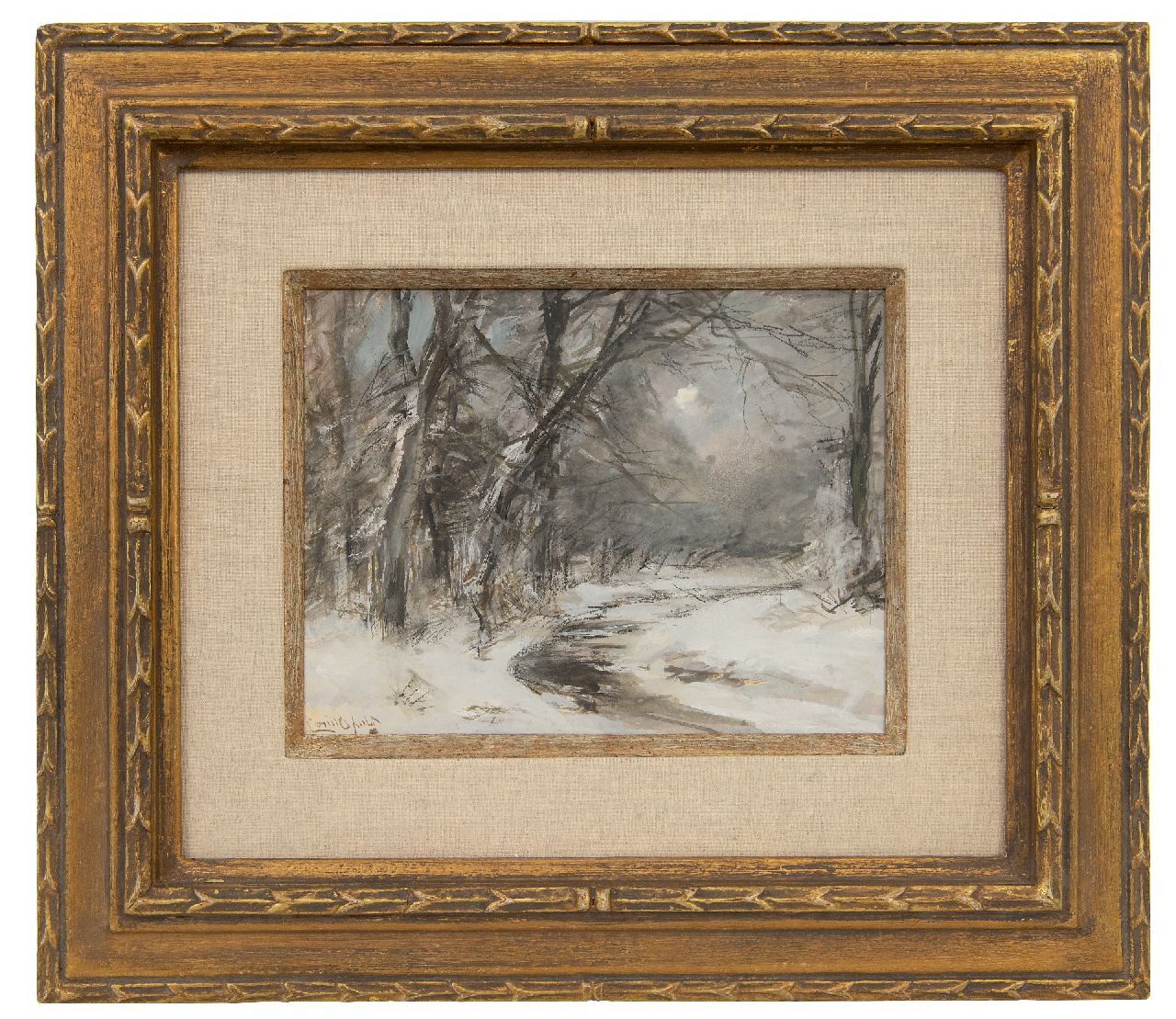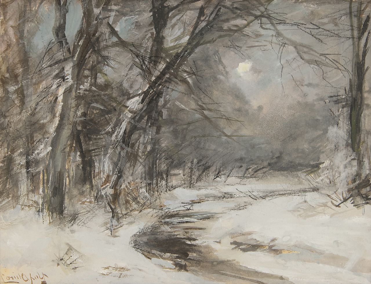 Louis Apol kunstwerk • aquarel • tekening • voorheen te koop Besneeuwde vaart in het bos