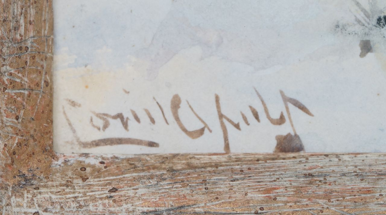 gouache op papier 15,5 x 20,5 cm, gesigneerd linksonder