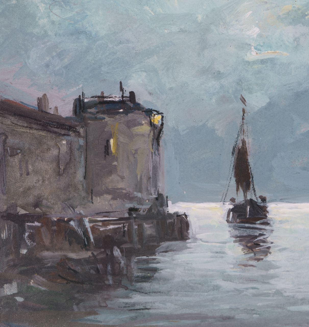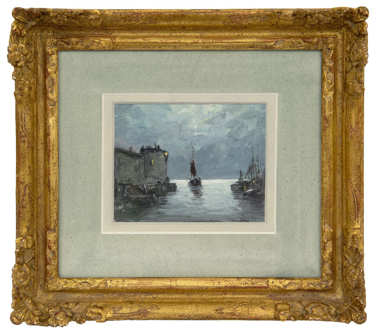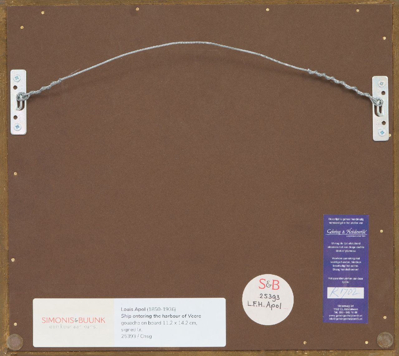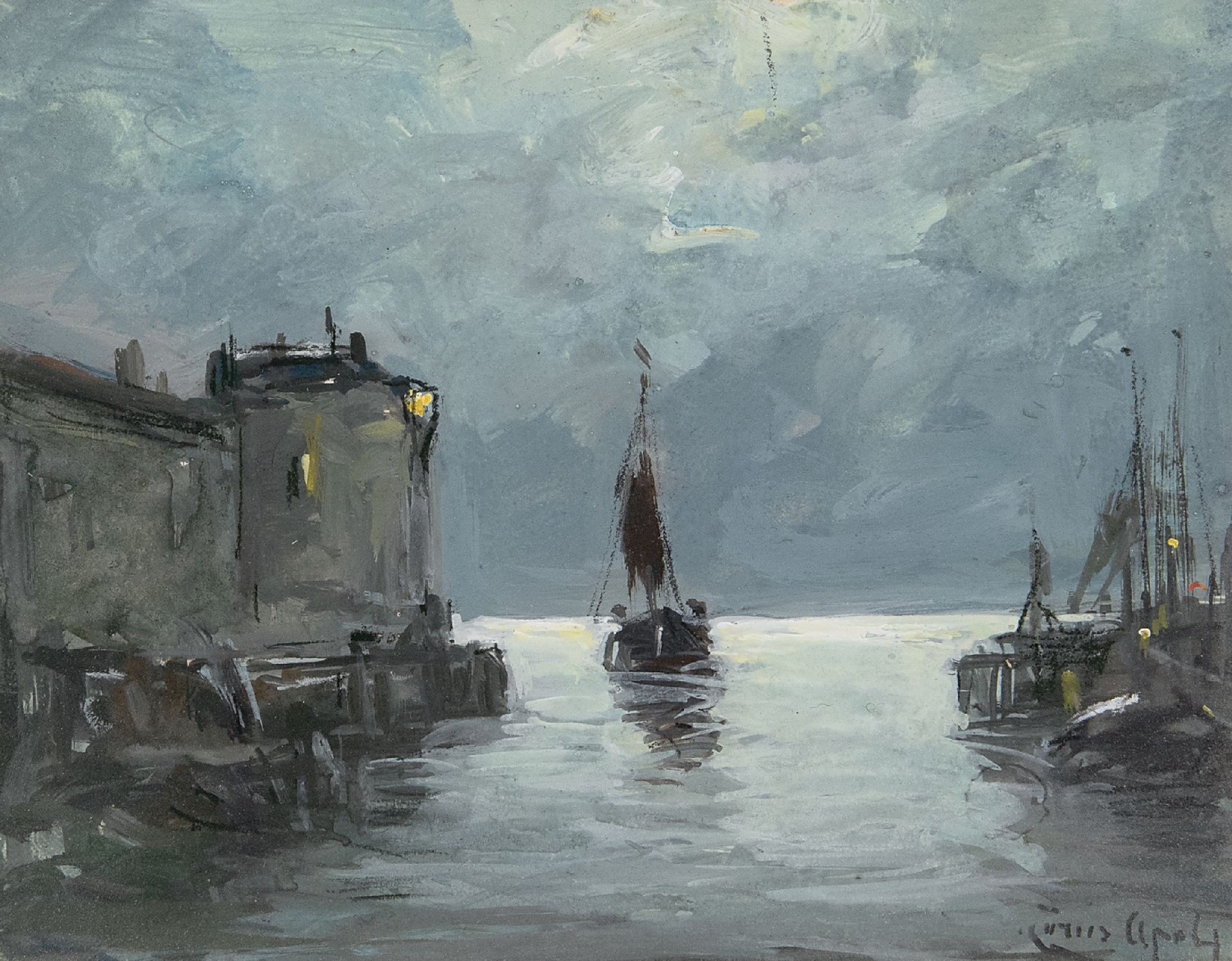 Louis Apol kunstwerk • aquarel • tekening • voorheen te koop Binnenvarend schip in de haven van Veere