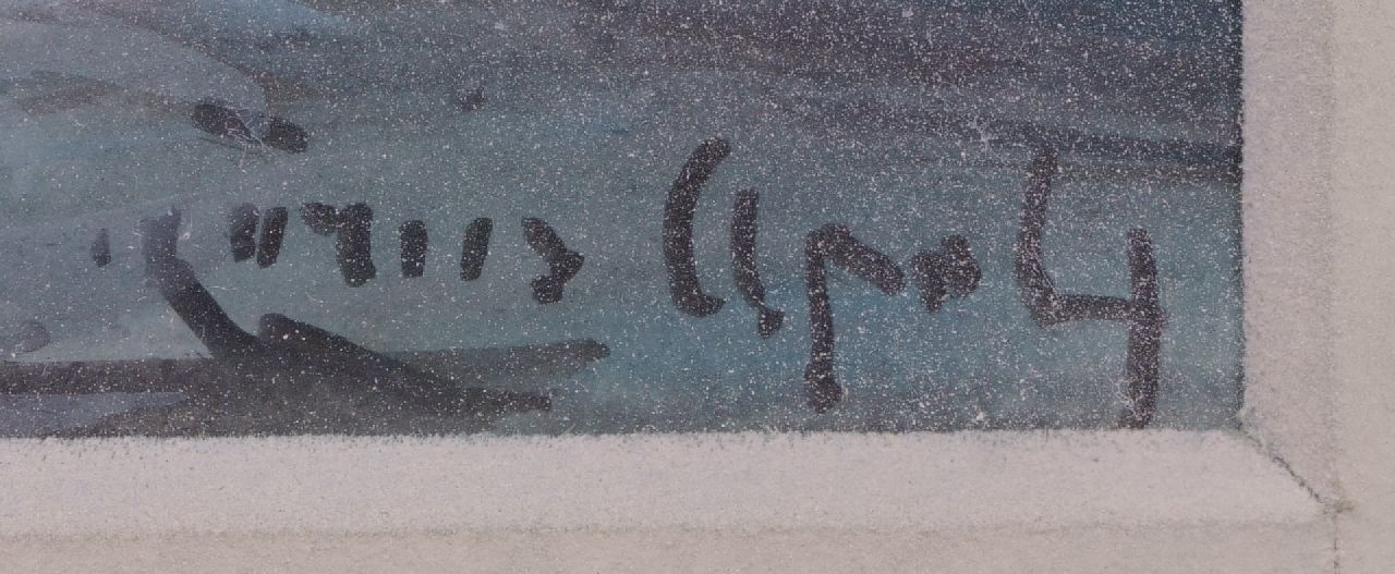 gouache op board 11,2 x 14,2 cm, gesigneerd rechtsonder