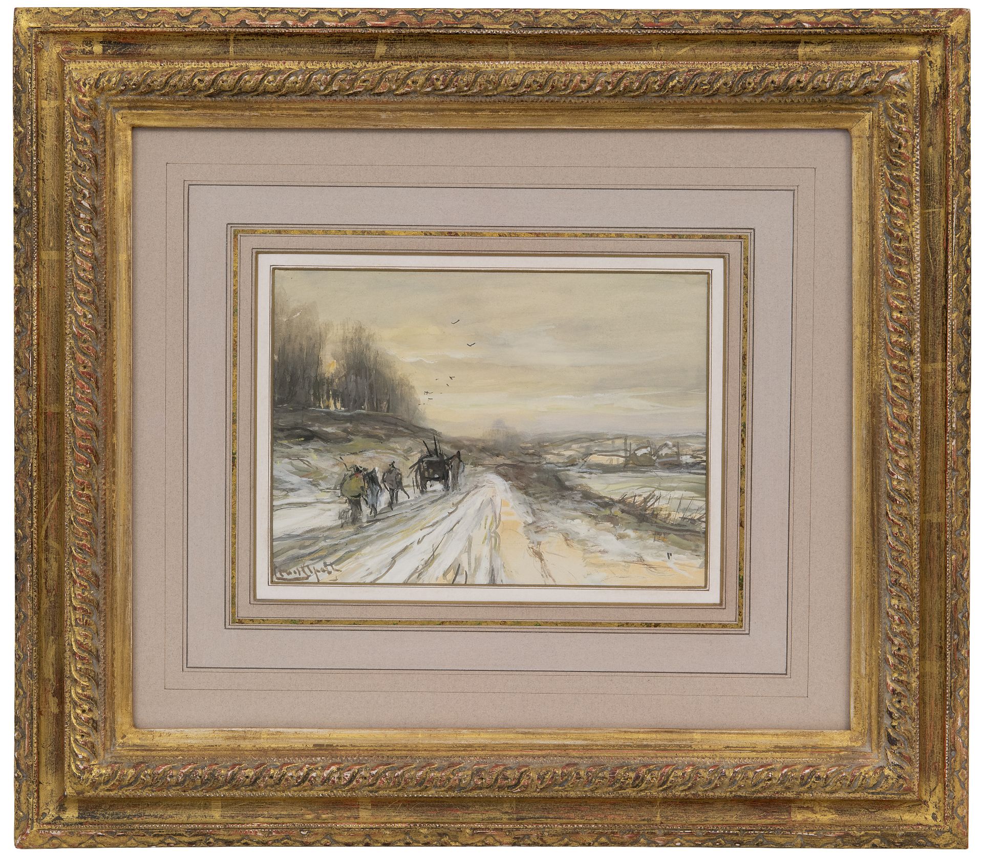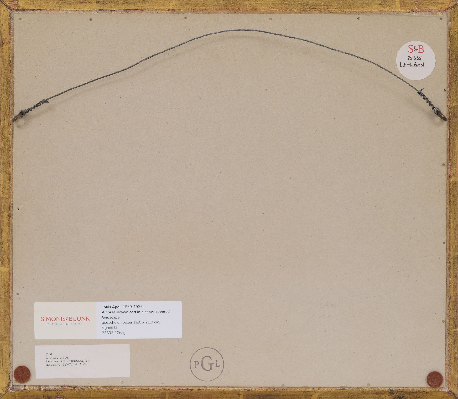 Louis Apol kunstwerk • aquarel • tekening • voorheen te koop Paard en wagen in een winterlandschap