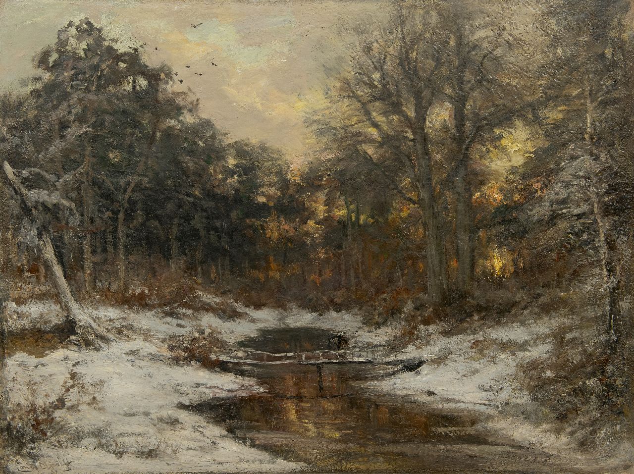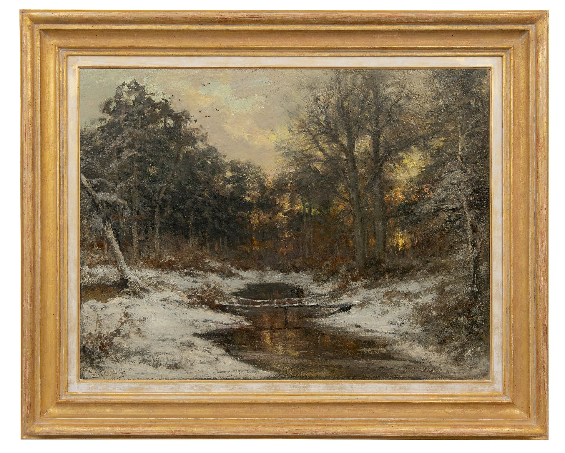 Louis Apol kunstwerk • schilderij • te koop Besneeuwd bosgezicht bij zonsondergang
