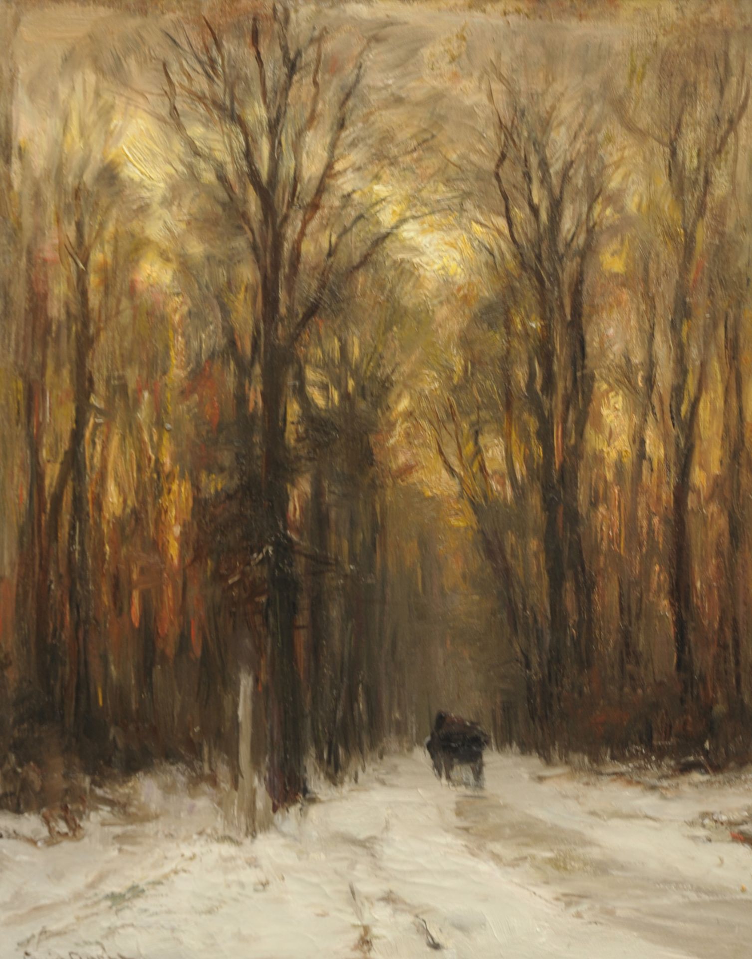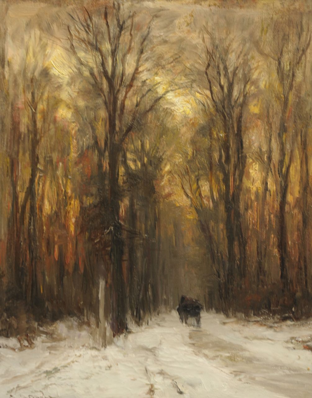 Louis Apol kunstwerk • schilderij • voorheen te koop Besneeuwde laan met paard-en-wagen