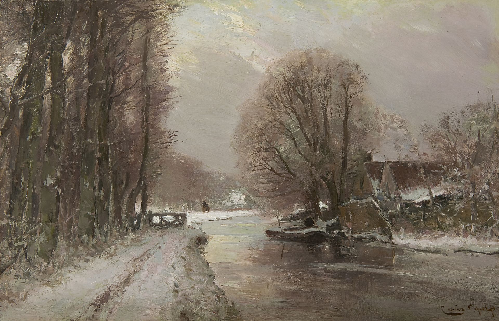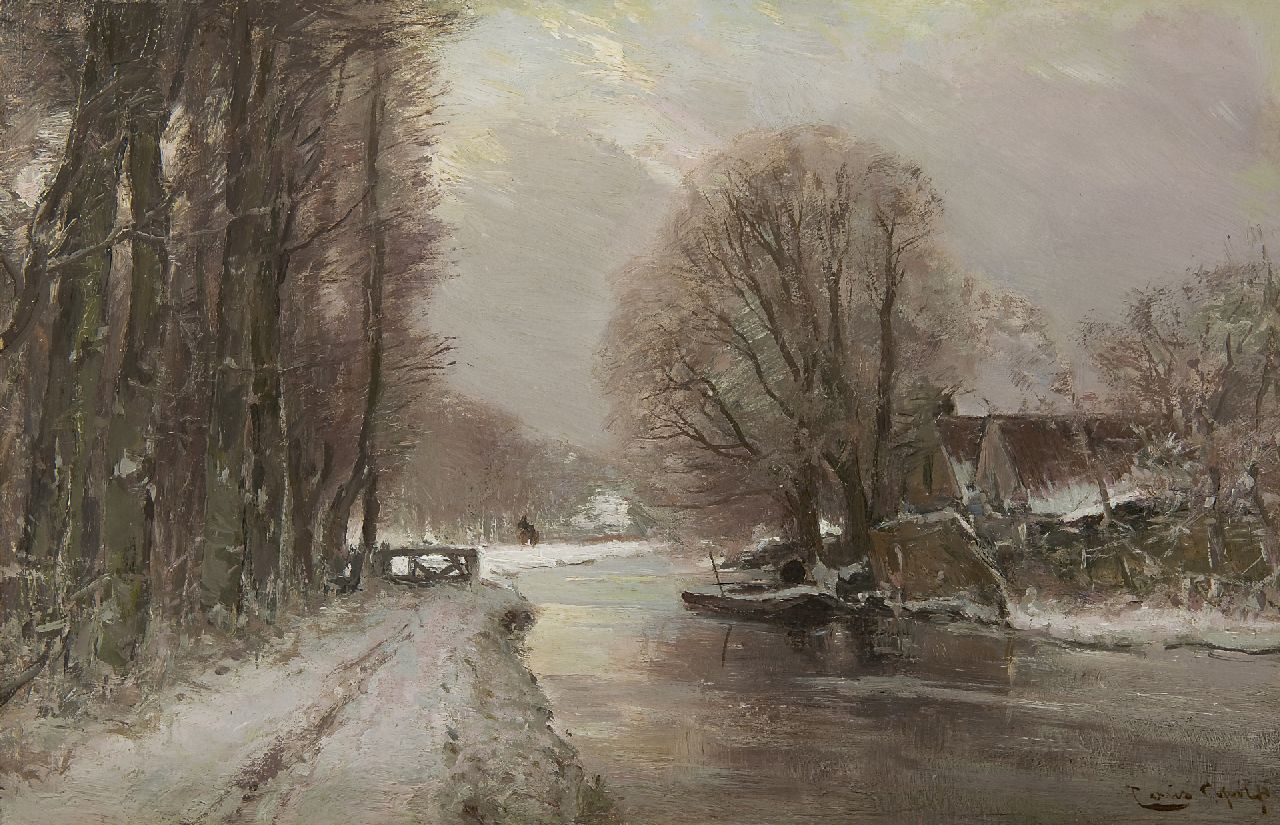 Louis Apol kunstwerk • schilderij • voorheen te koop Besneeuwde vaart