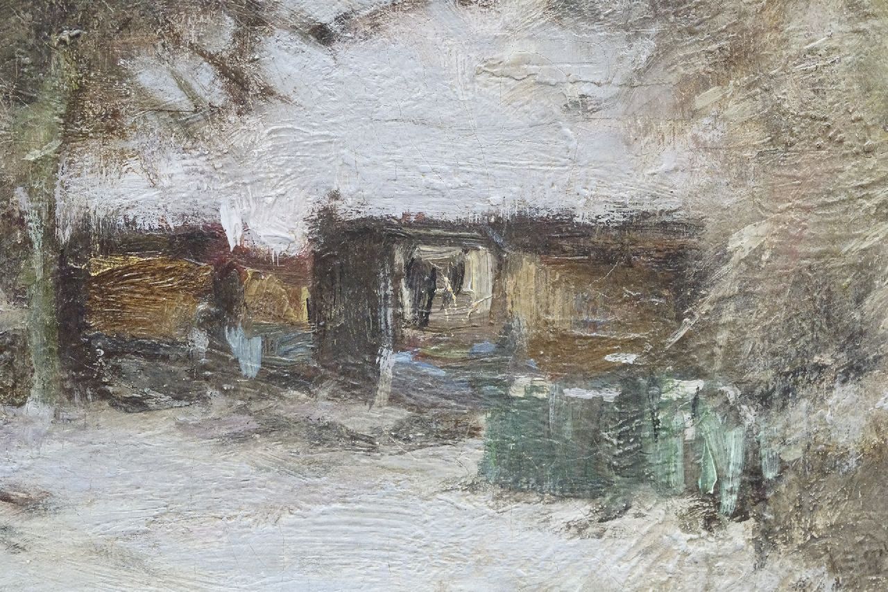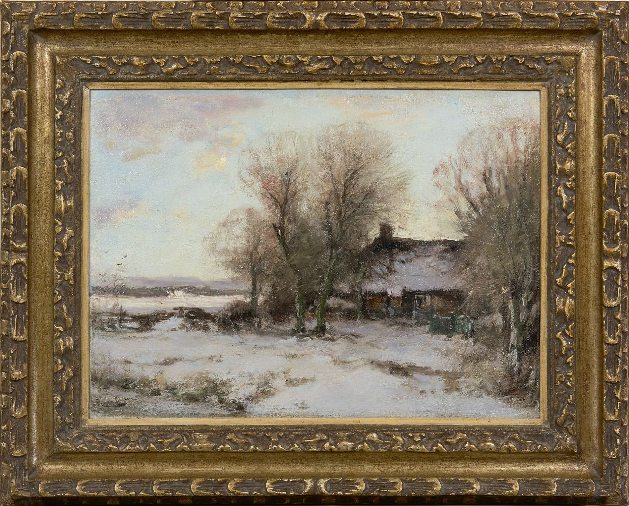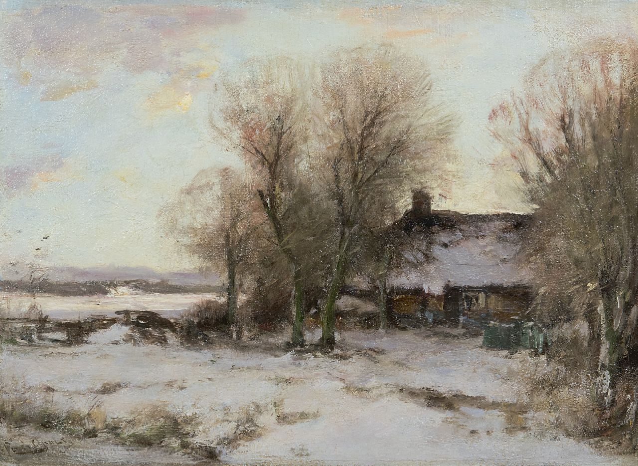 Louis Apol kunstwerk • schilderij • te koop Boerderij in sneeuwlandschap