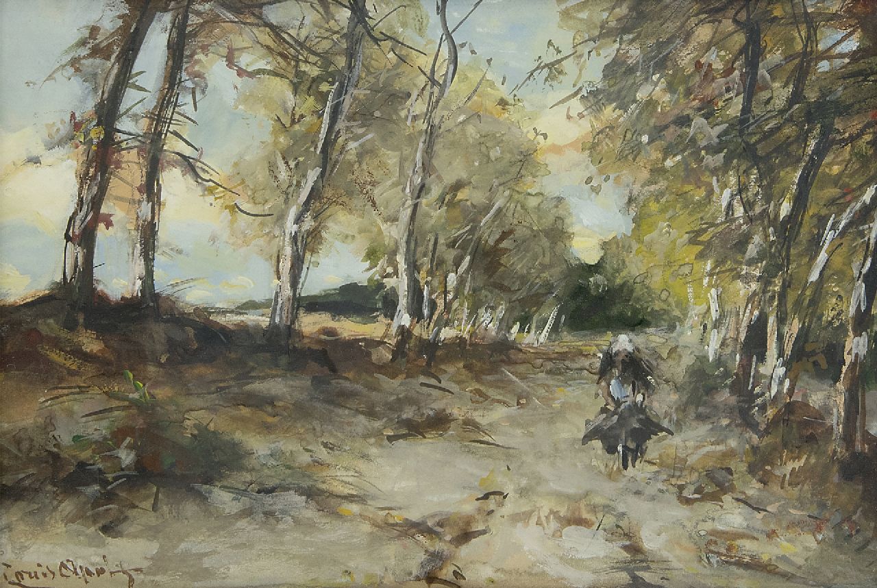 Louis Apol kunstwerk • aquarel • tekening • te koop Boslaantje in de herfst