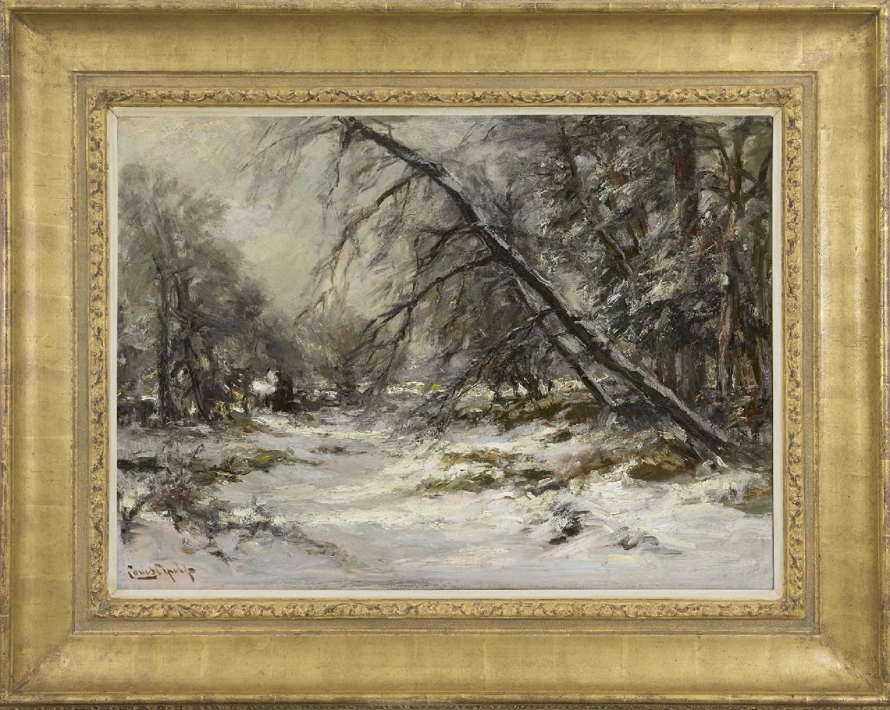 Louis Apol kunstwerk • schilderij • voorheen te koop Bospad in de sneeuw