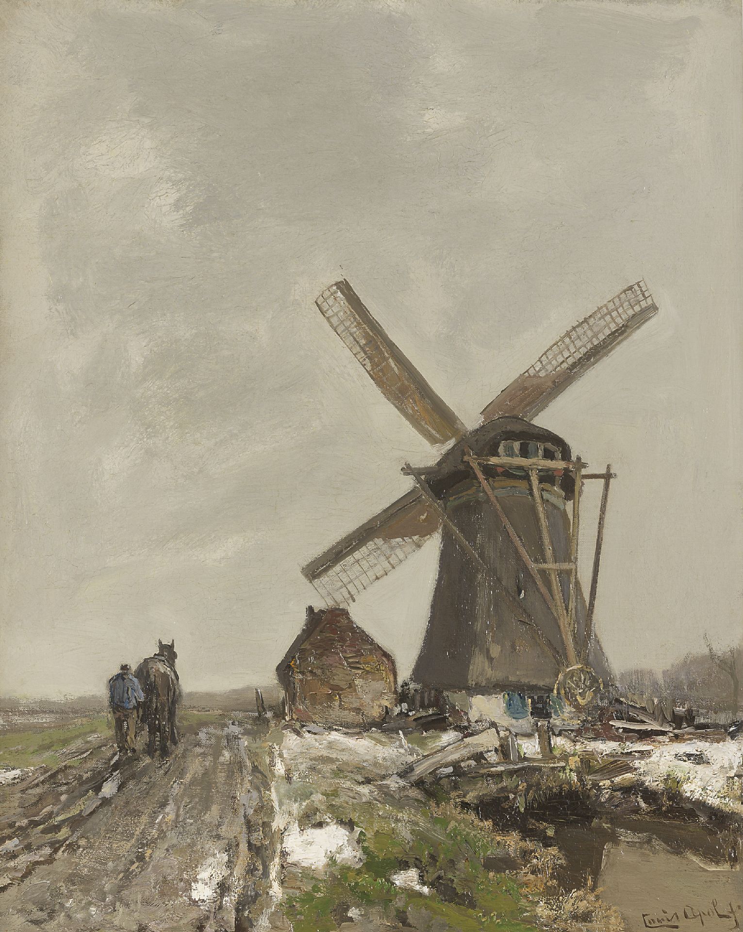 Louis Apol kunstwerk • schilderij • voorheen te koop Einde van de winter: boer bij de Laakmolen te Den Haag