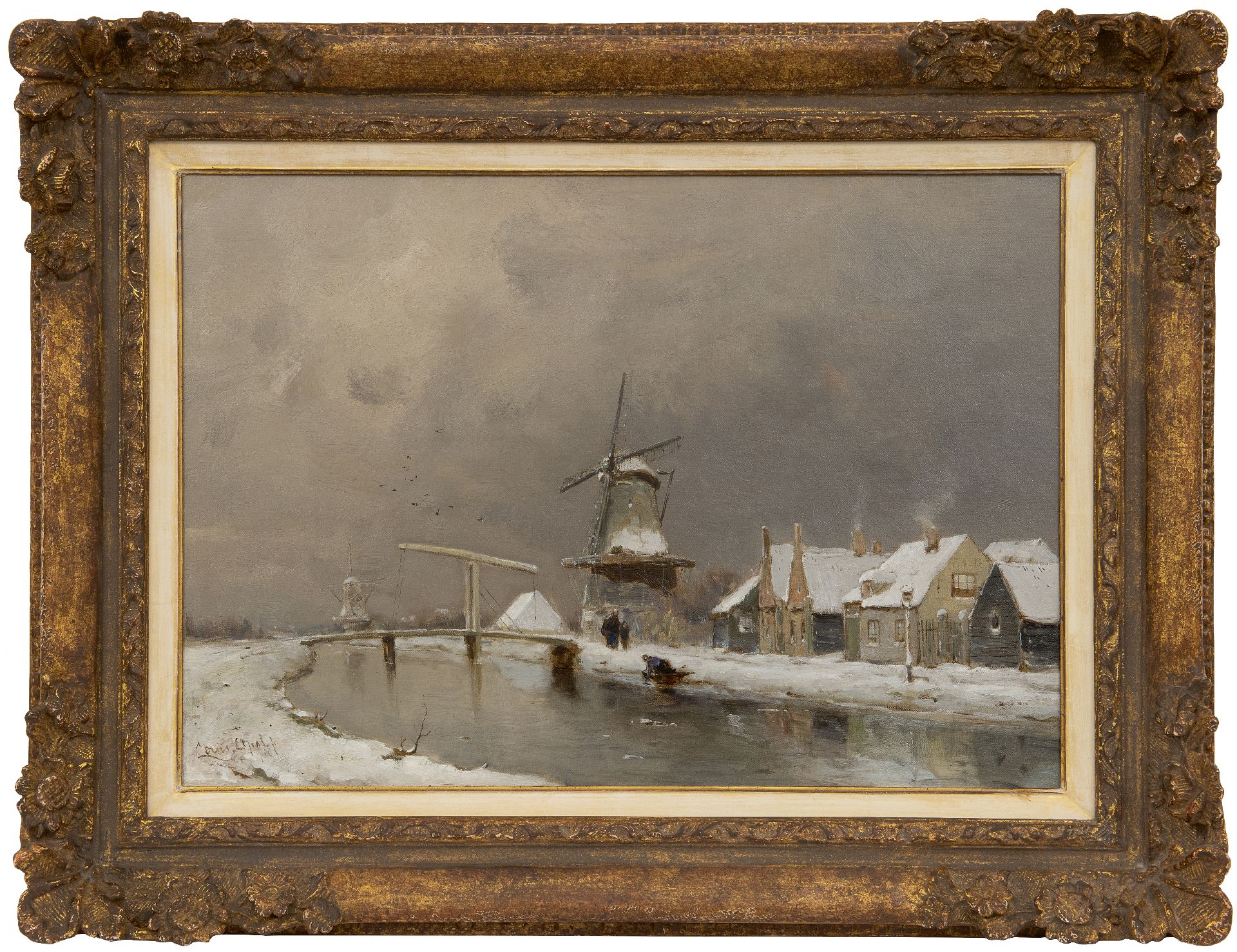 Louis Apol kunstwerk • schilderij • te koop Gezicht op een winters dorpje aan een rivier