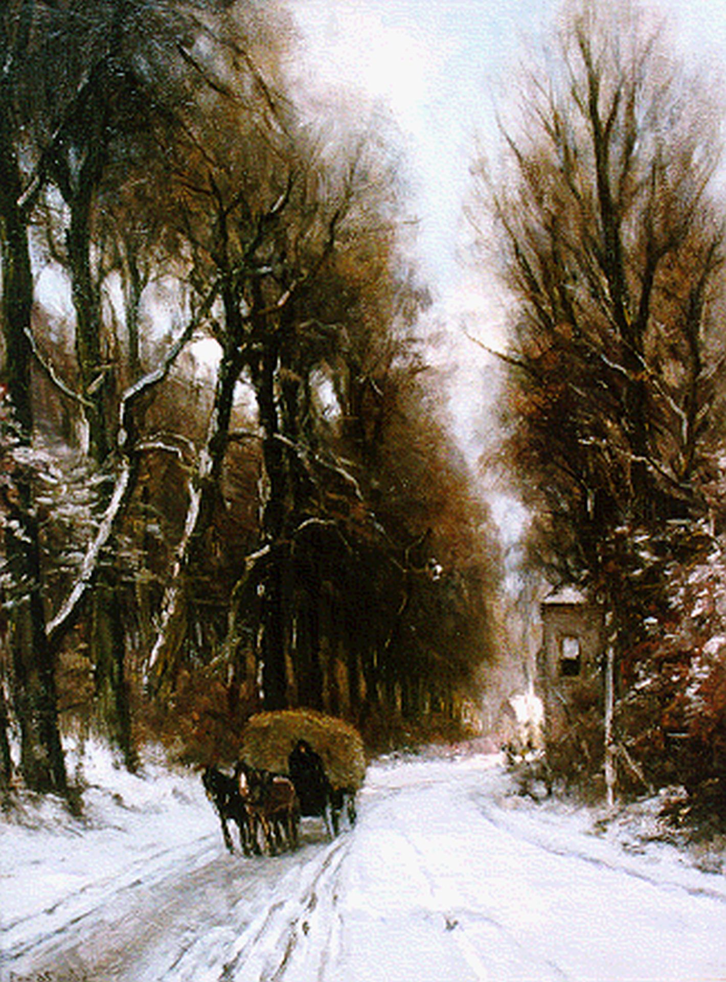 Louis Apol kunstwerk • schilderij • voorheen te koop Hooiwagen op besneeuwde landweg