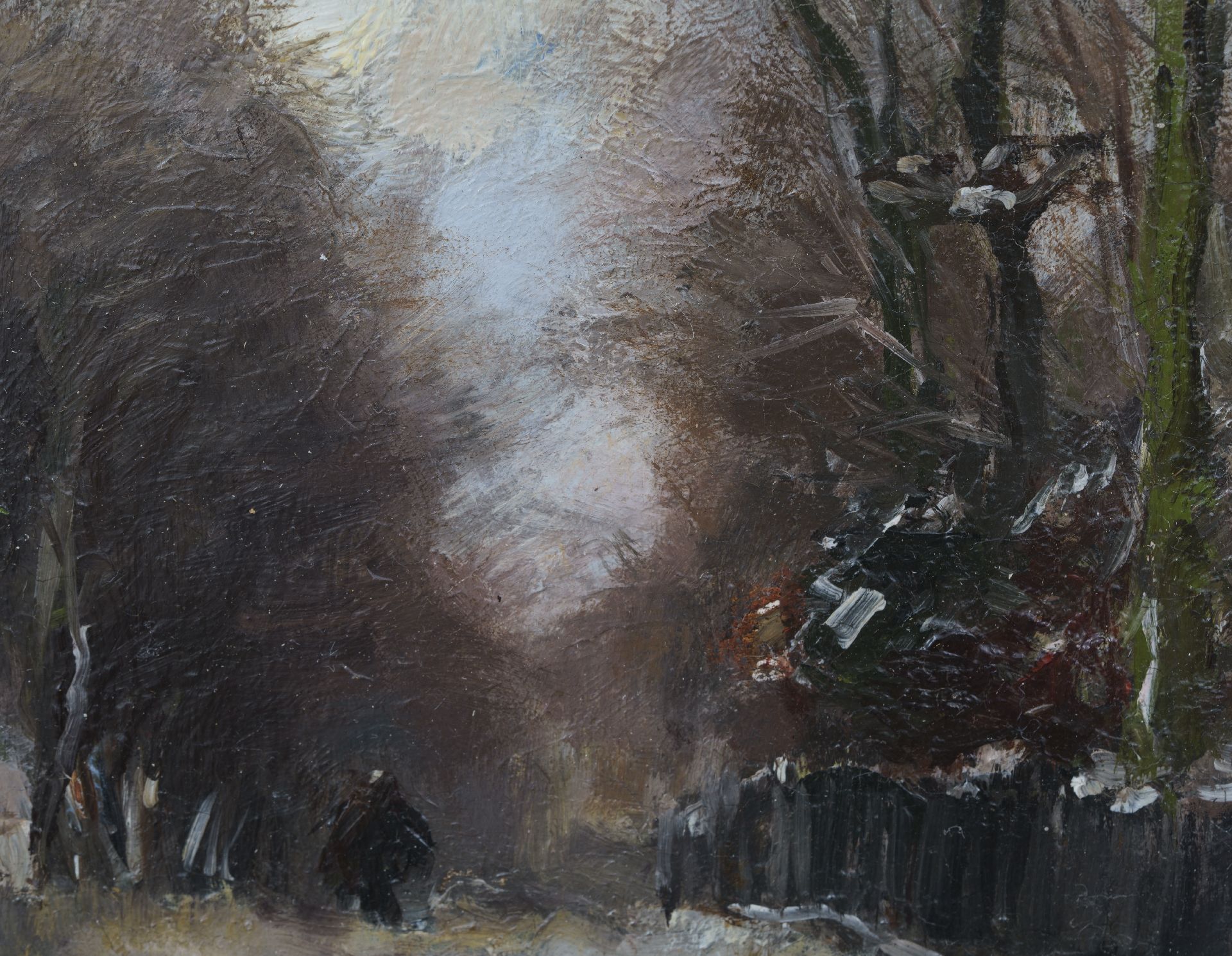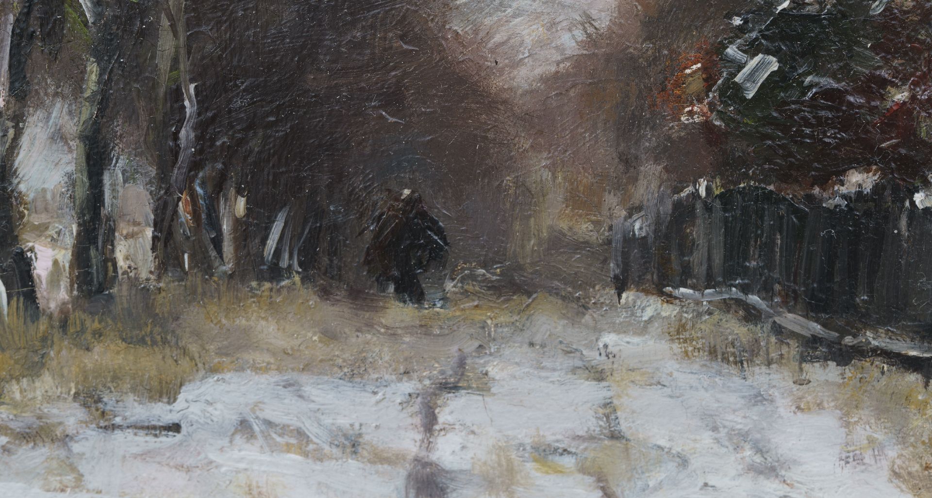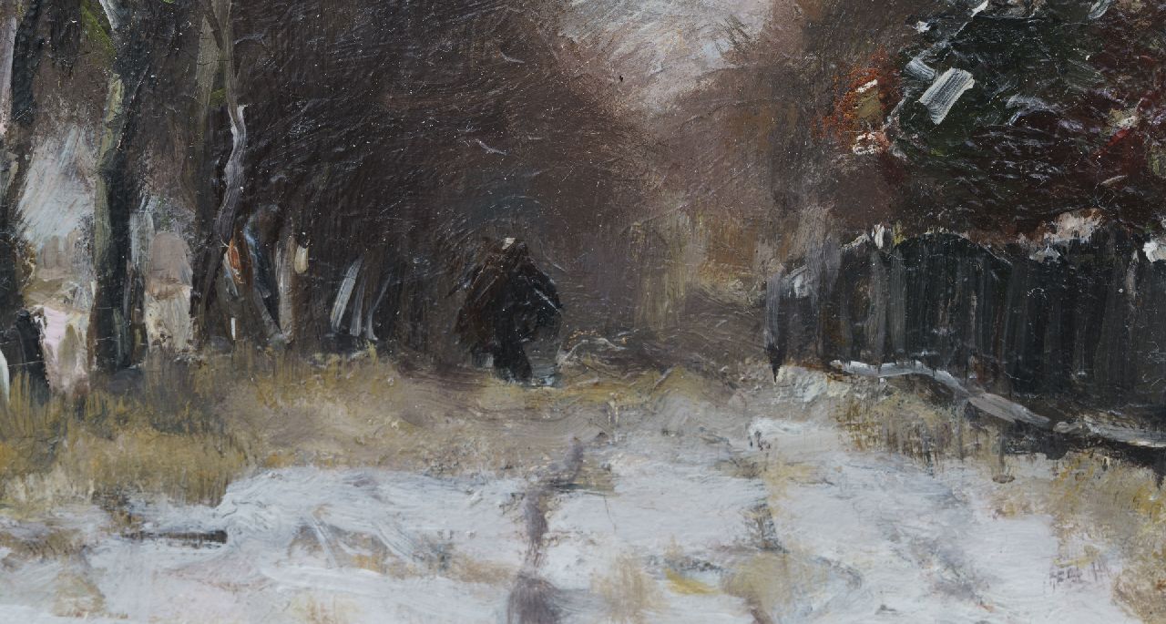Louis Apol kunstwerk • schilderij • voorheen te koop Houtsprokkelaarster op een besneeuw pad