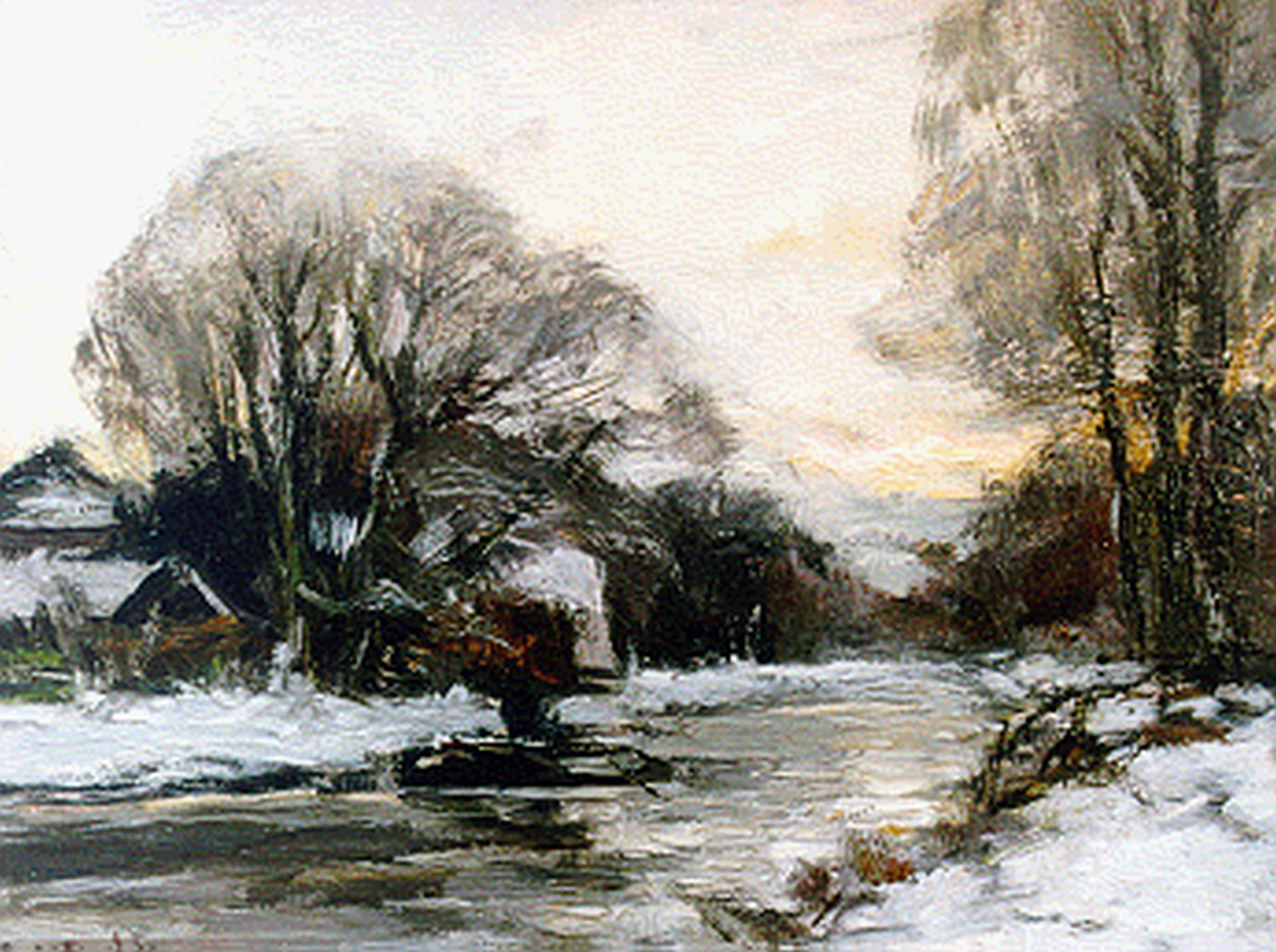 Louis Apol kunstwerk • schilderij • voorheen te koop Huisjes in een winterlandschap