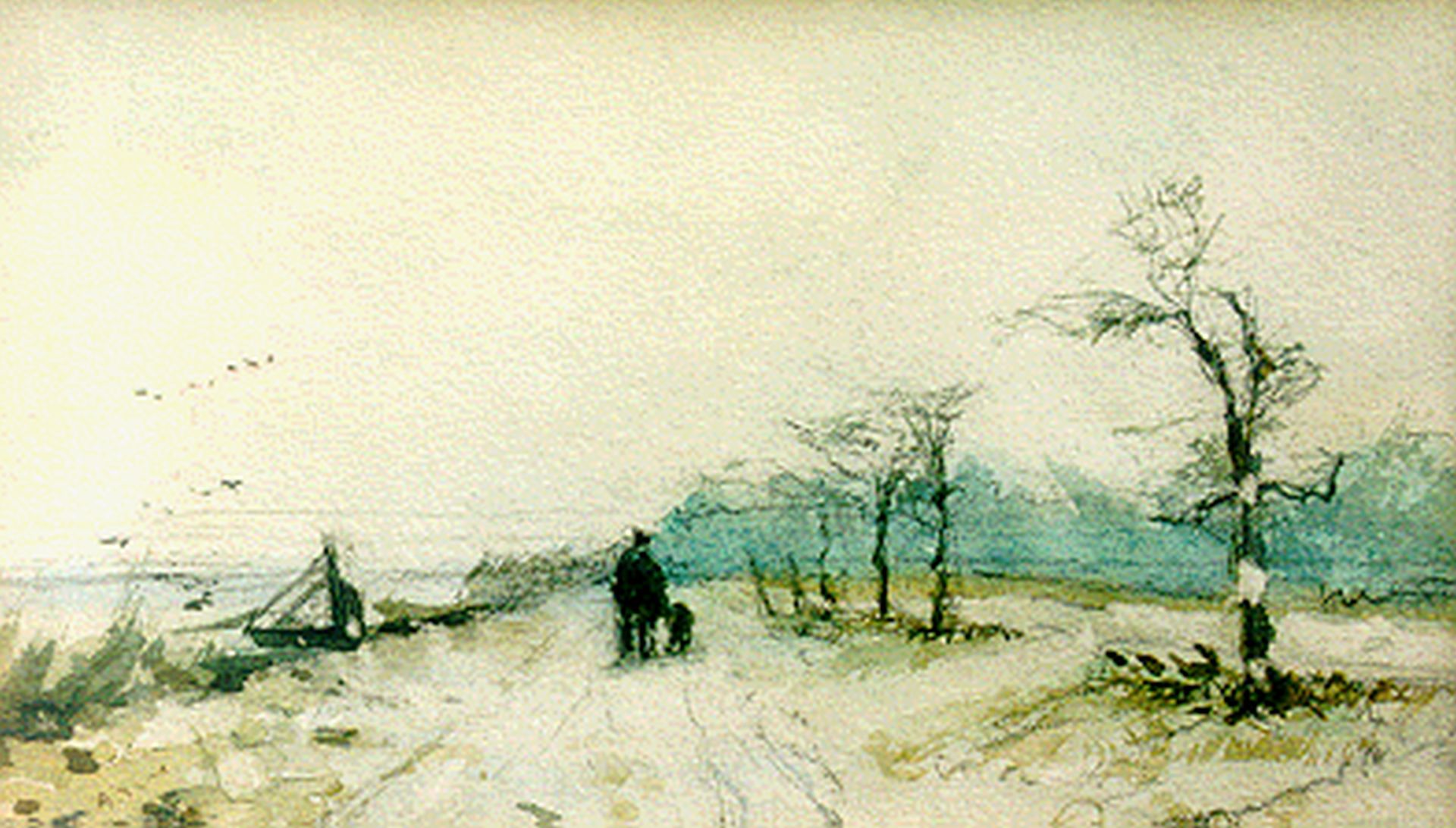 Louis Apol kunstwerk • aquarel • tekening • voorheen te koop Reizigers op een pad