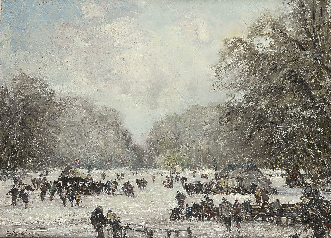 Louis Apol kunstwerk • schilderij • voorheen te koop Schaatsers op de Haagse Bosvijver