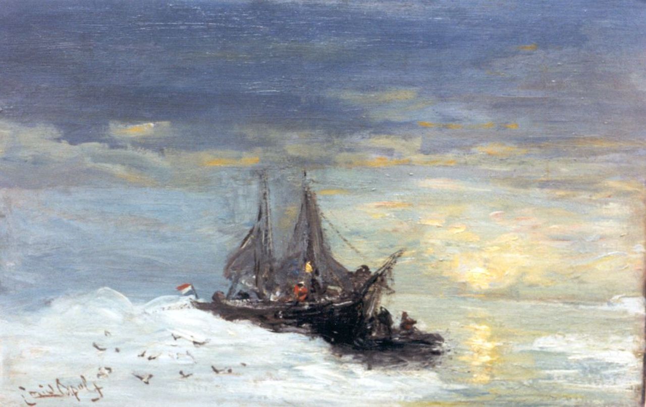 Louis Apol kunstwerk • schilderij • voorheen te koop Schepen bij Spitsbergen