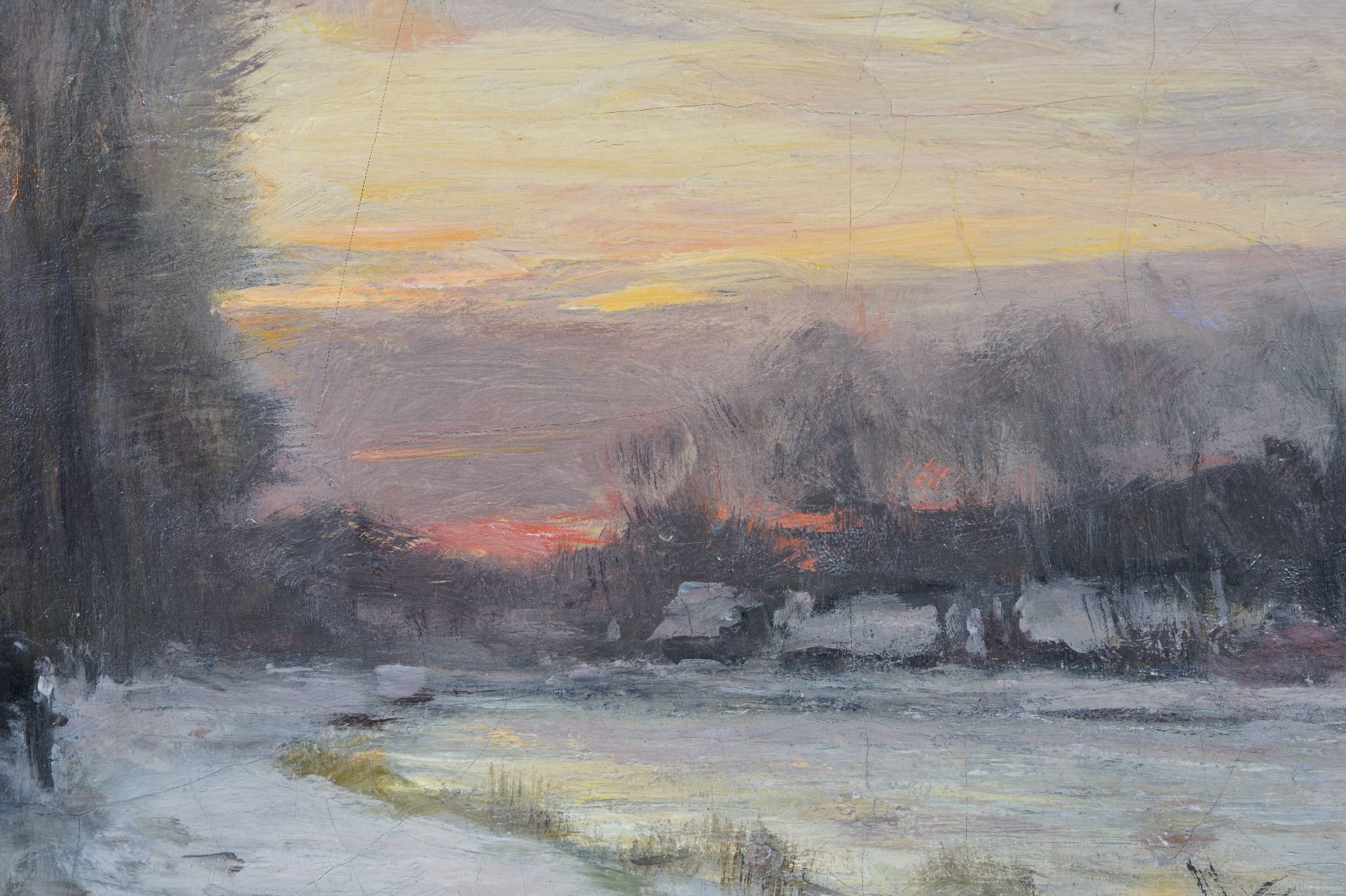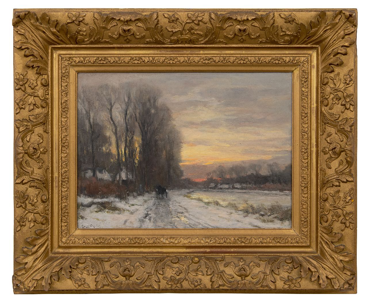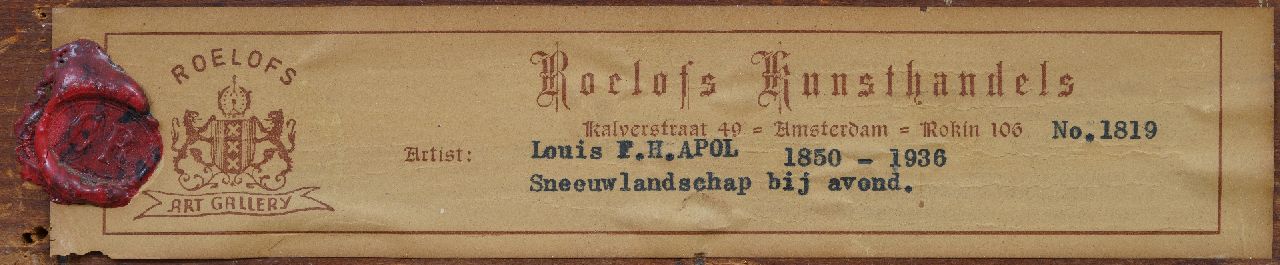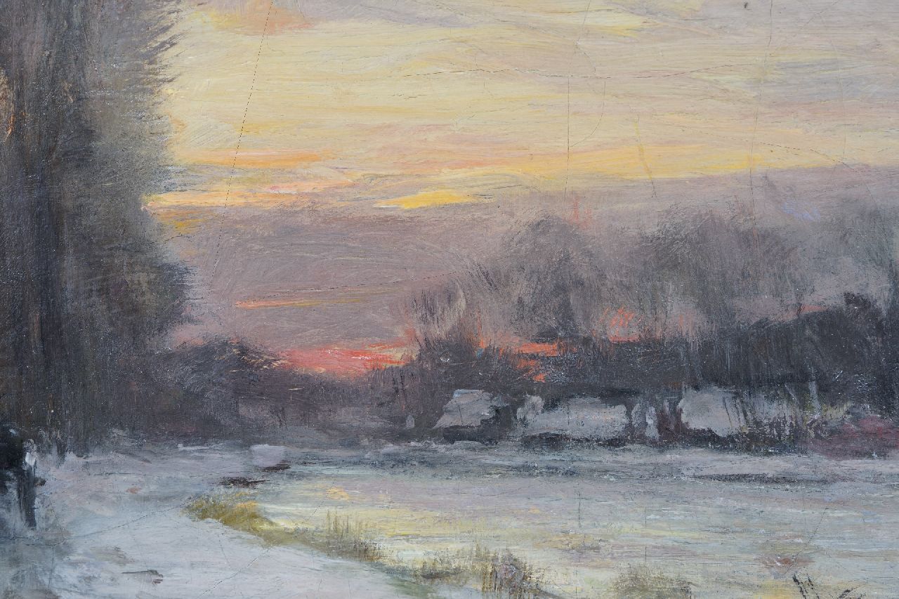 Louis Apol kunstwerk • schilderij • te koop Sneeuwlandschap bij avond