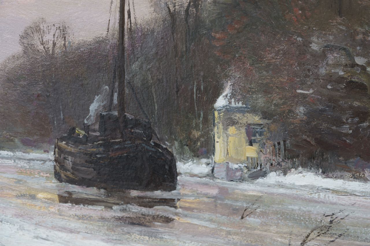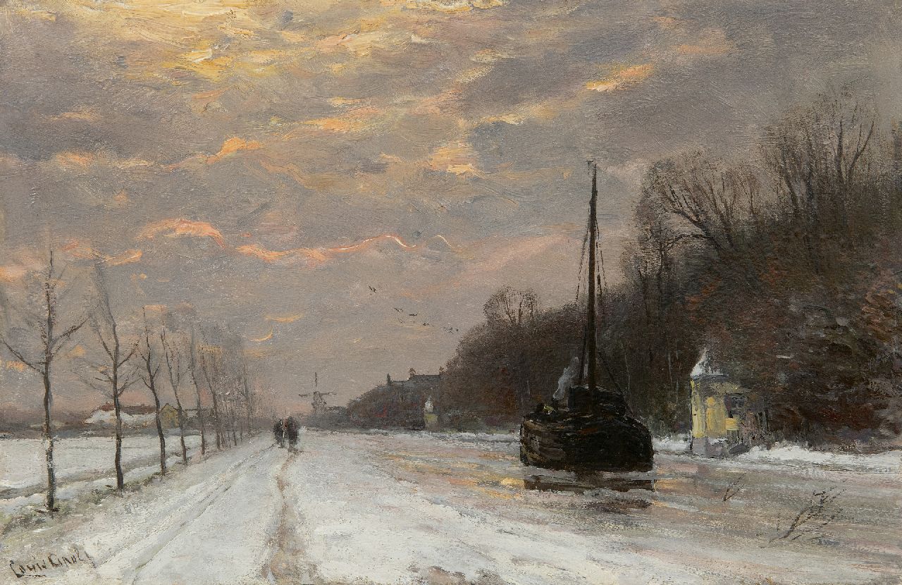 Louis Apol kunstwerk • schilderij • voorheen te koop Vrachtvaart op de winterse Vecht