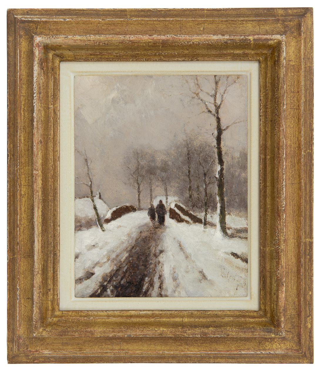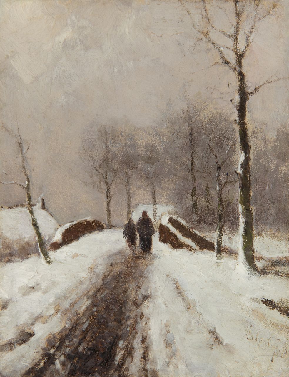 Louis Apol kunstwerk • schilderij • voorheen te koop Wandelaars op een besneeuwd pad