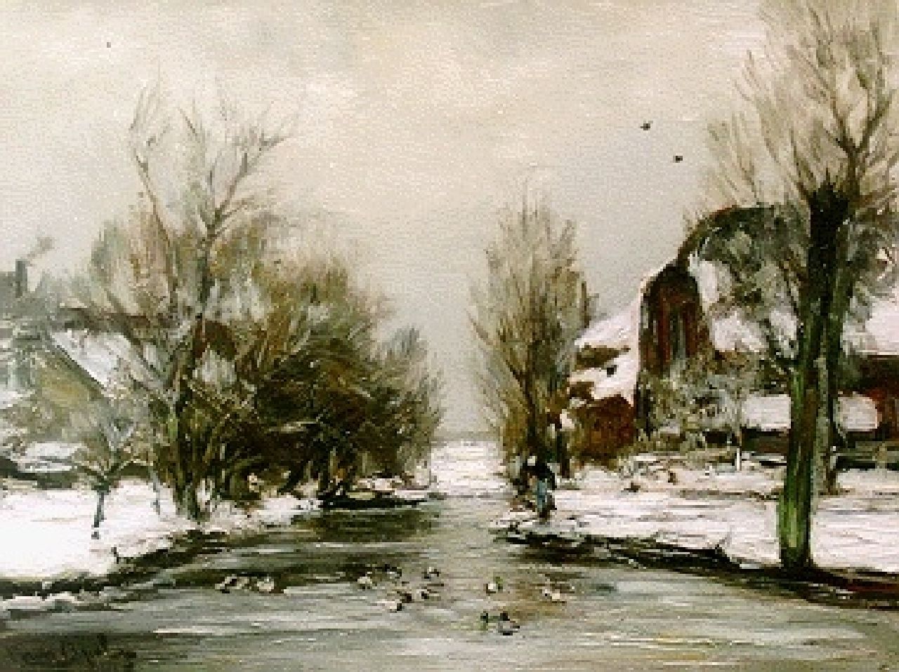 Louis Apol kunstwerk • schilderij • voorheen te koop Winter in Voorschoten