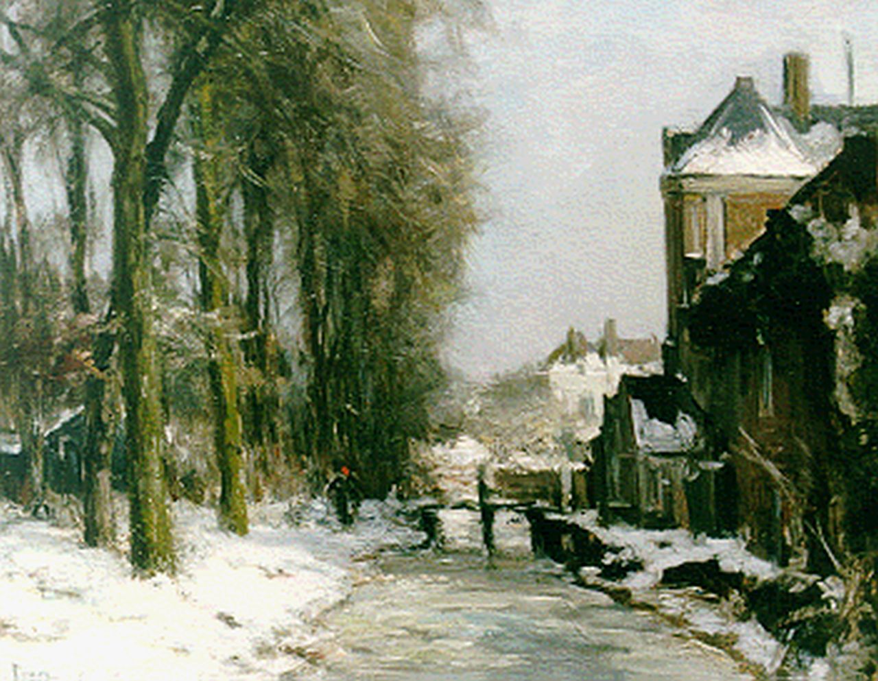 Louis Apol kunstwerk • schilderij • voorheen te koop Winterlandschap met bevroren vaart