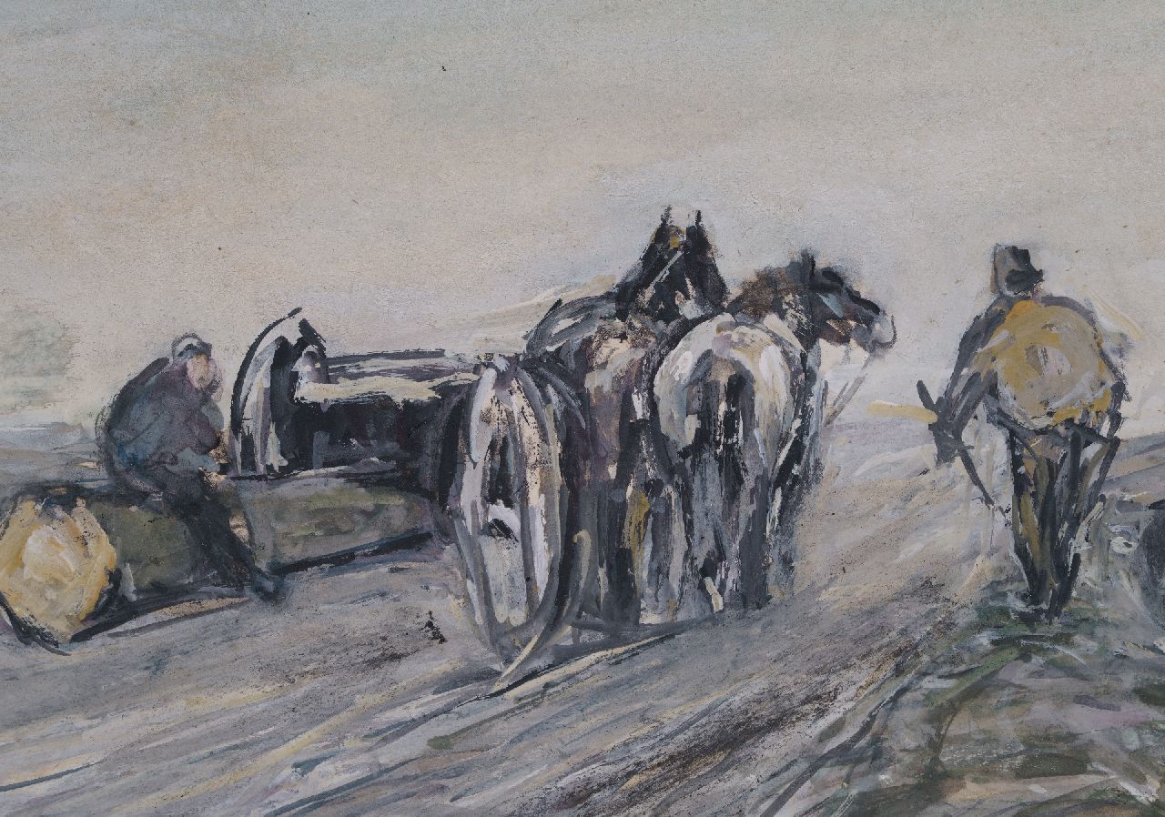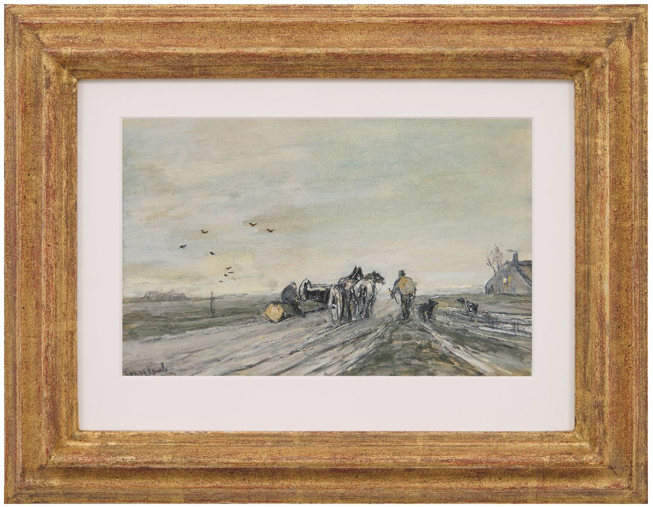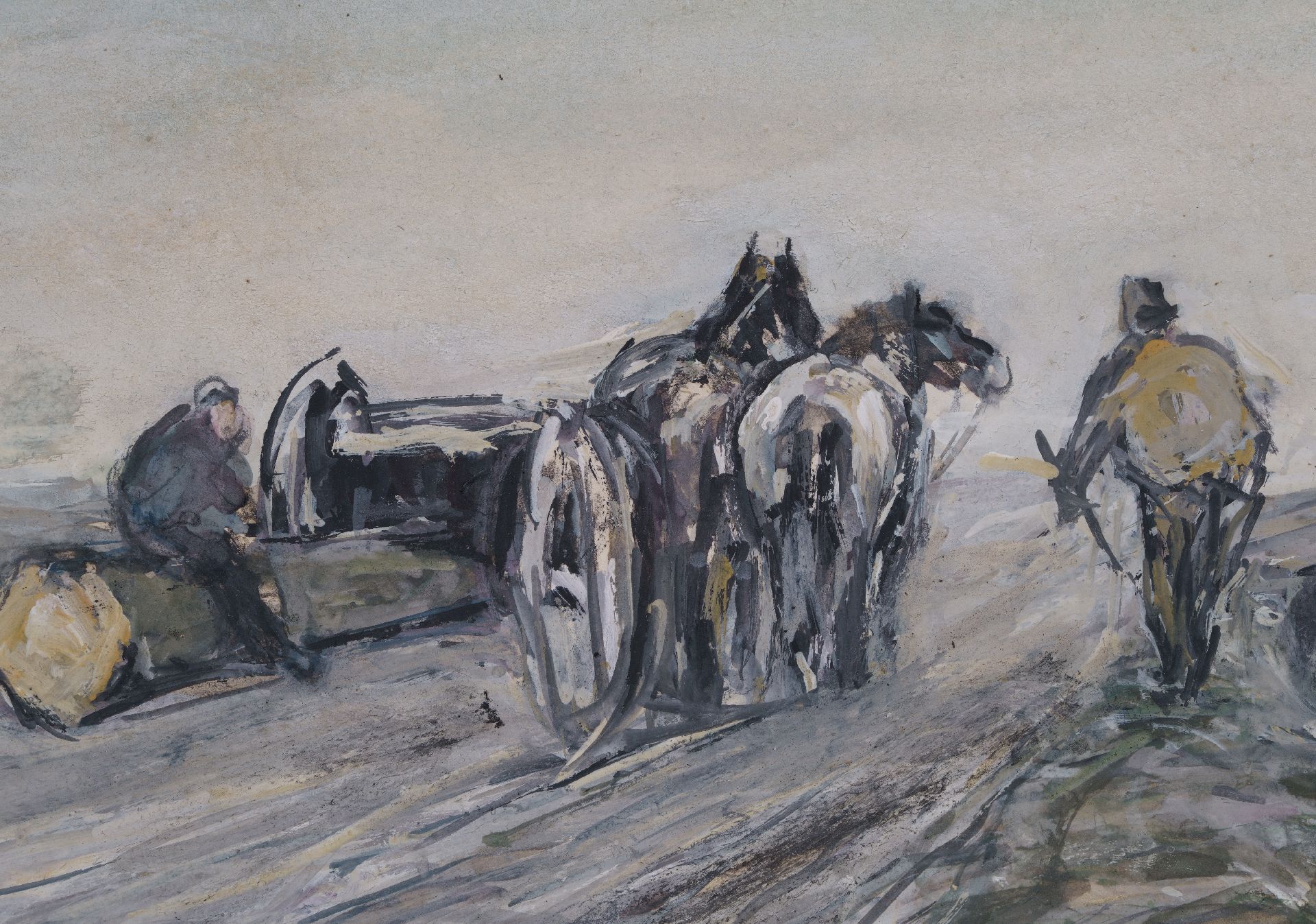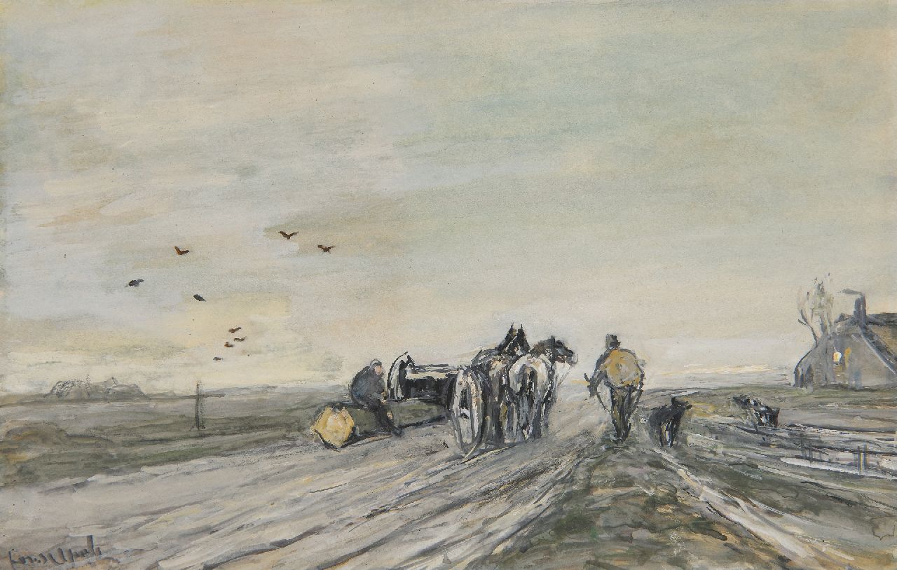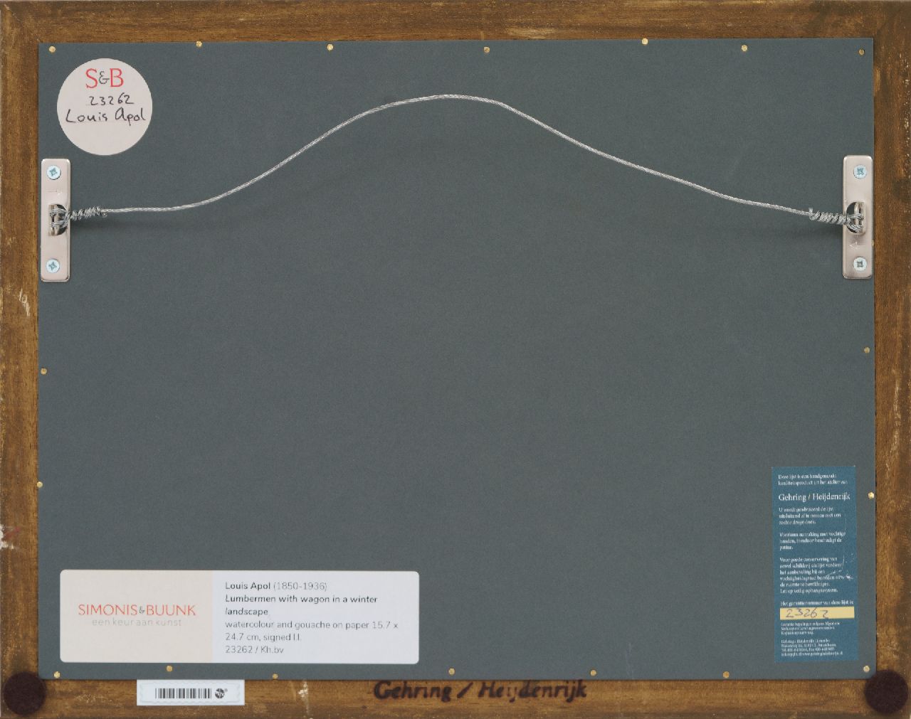 Louis Apol kunstwerk • aquarel • tekening • te koop Winterlandschap met een mallejan