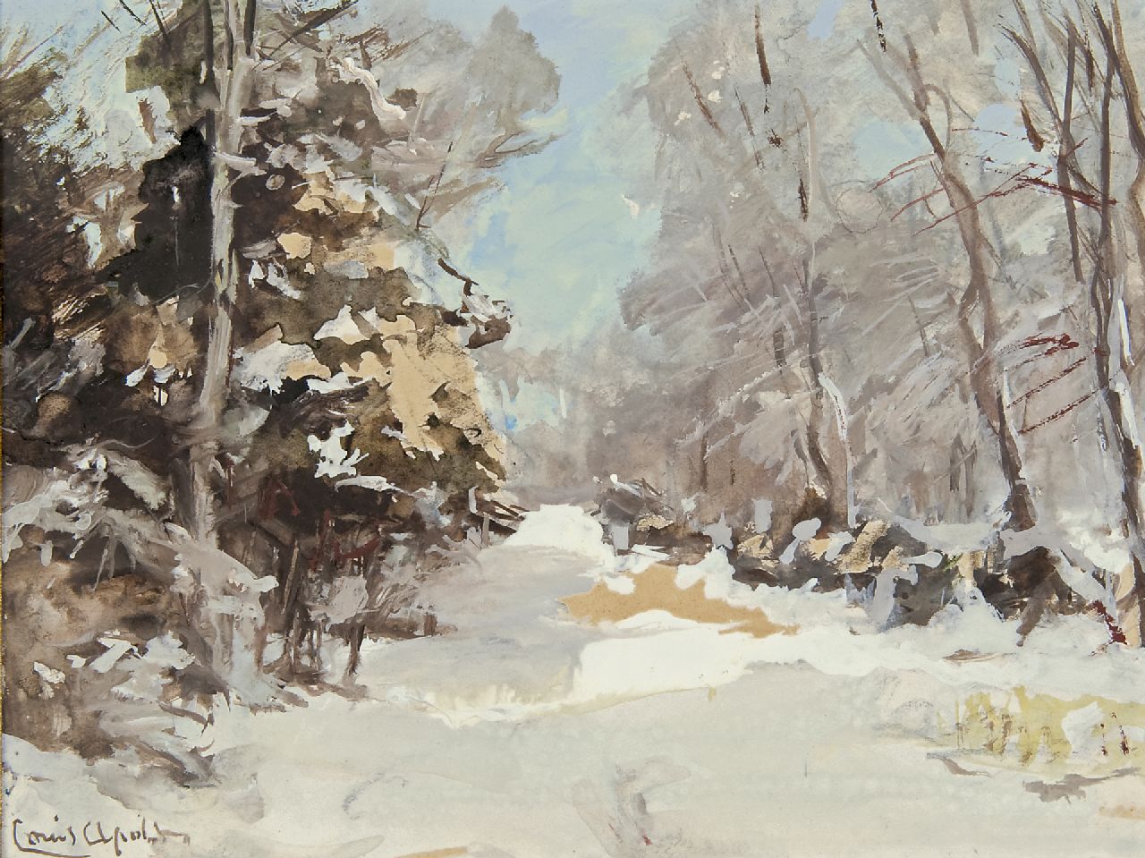 Louis Apol kunstwerk • aquarel • tekening • voorheen te koop Winters bospad
