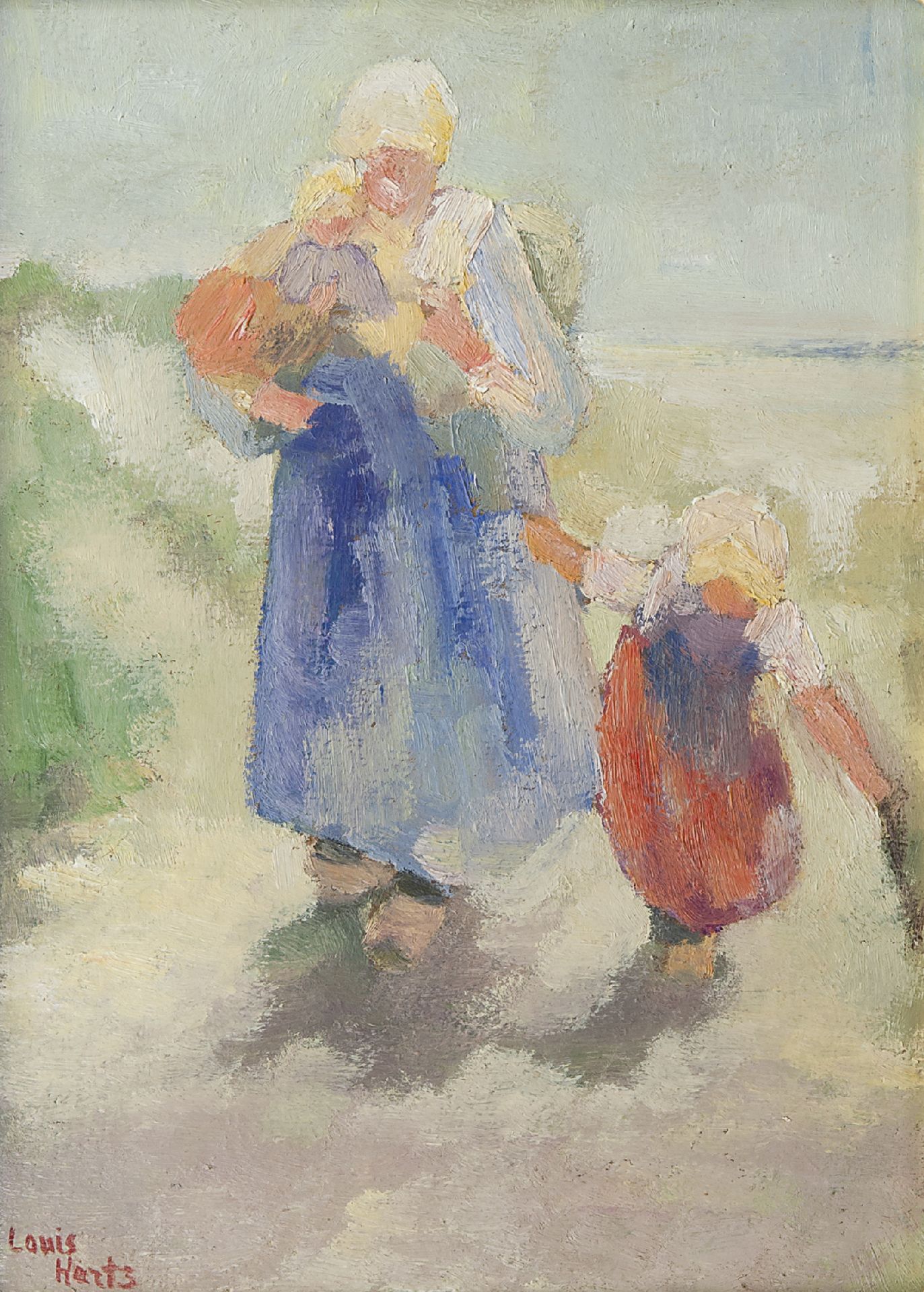 Louis Hartz begon zijn opleiding aan de academie van Amsterdam al op zó jonge leeftijd dat hij geen toegang kreeg tot de klas voor naaktstudie. Maar zijn talent won het van de conventies. Tijdens zijn studiejaren, en ook daarna, werkte hij veelvuldig op het atelier van zijn begaafde neef Isaac Meyer de Haan en wijdde hij zich vooral aan het portret en landschap. Tussen 1900 en 1910 kocht hij een zomerhuis in Katwijk, waar hij het vissersleven schilderde. Hartz onderscheidt zich door zijn kleurige palet en voorkeur voor het uitbeelden van de arbeid en het leven van de vissersvrouwen. Door een brand ging helaas veel van dit Katwijkse werk verloren. Zijn schilderijen werden al vroeg aangekocht door de destijds beroemde arts-verzamelaar J.F.S Esser.