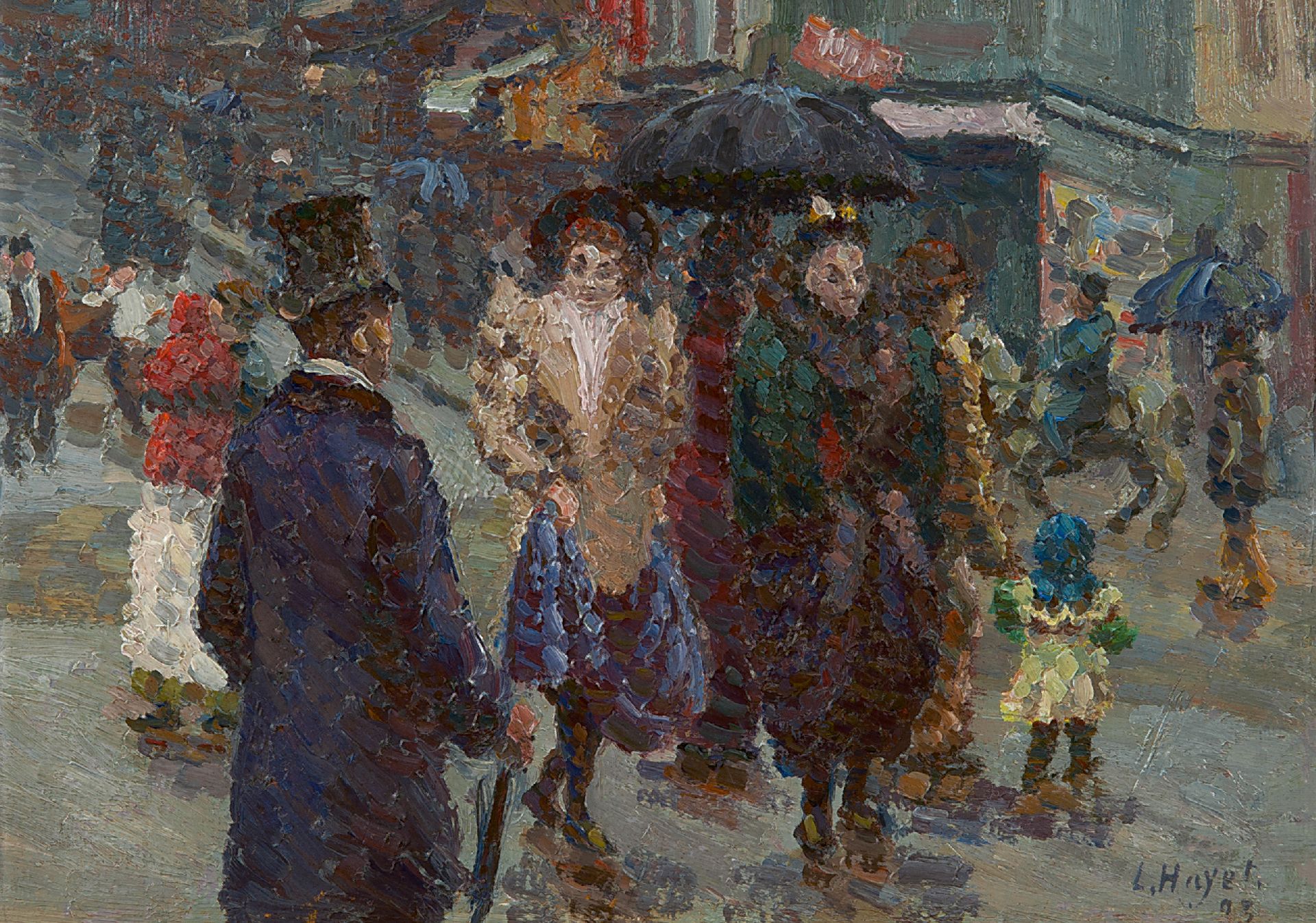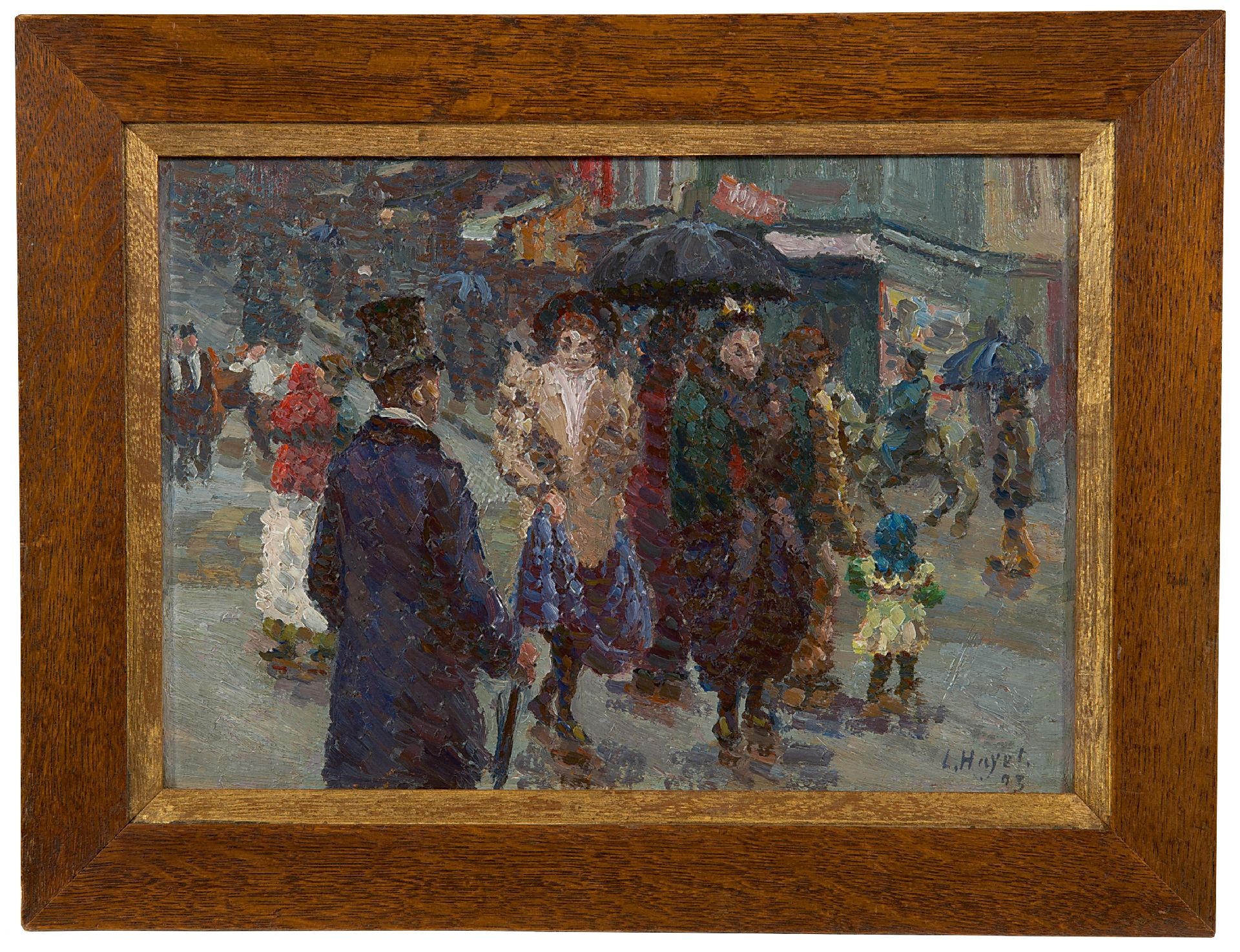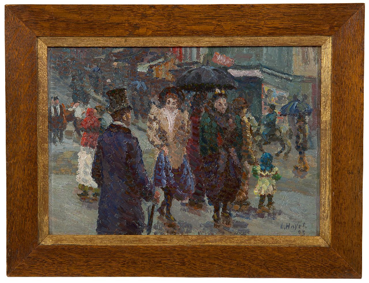 Louis Hayet kunstwerk • schilderij • voorheen te koop Ontmoeting in de regen