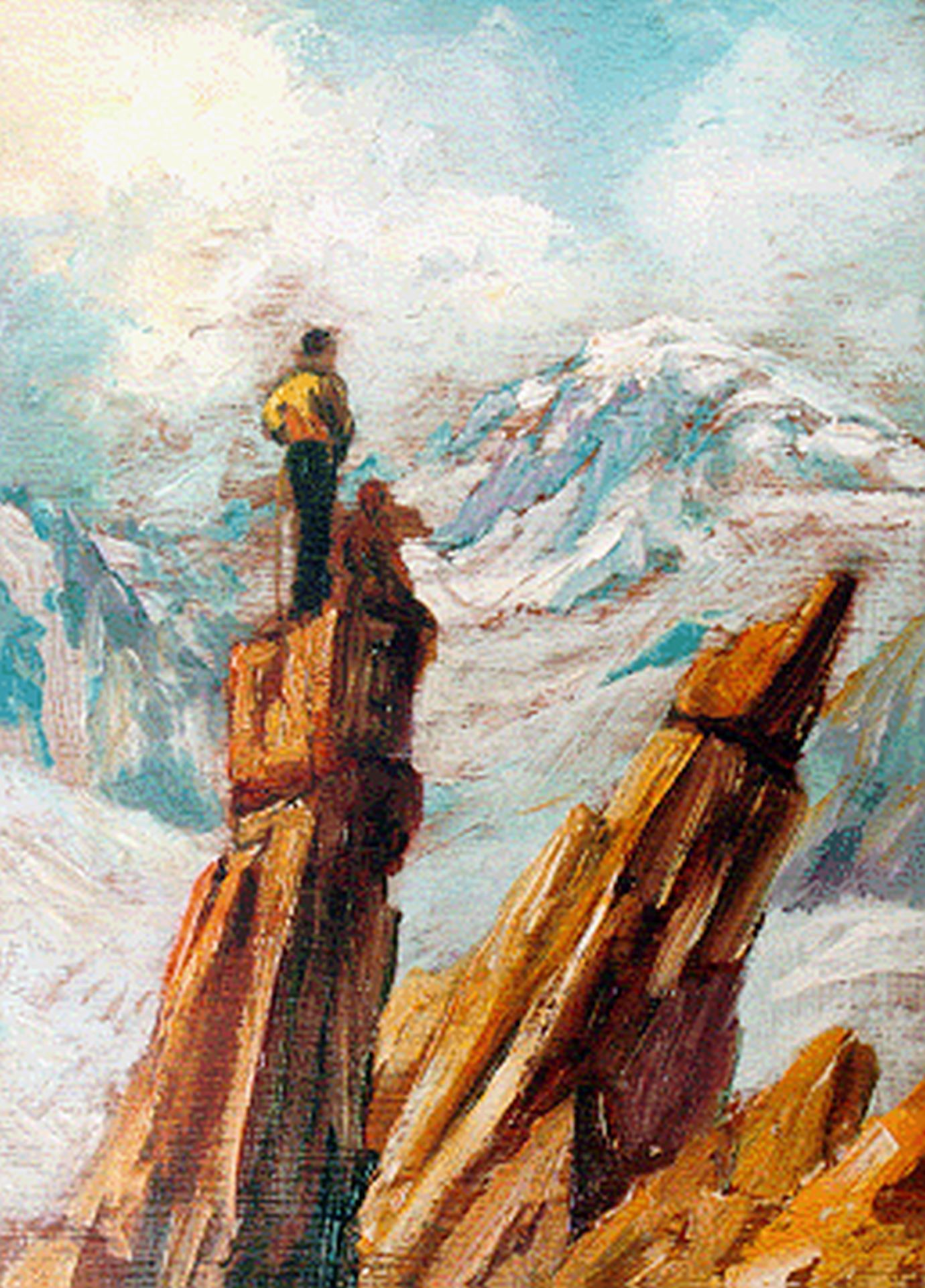 Louis Henri Magnat kunstwerk • schilderij • voorheen te koop Op de bergspits