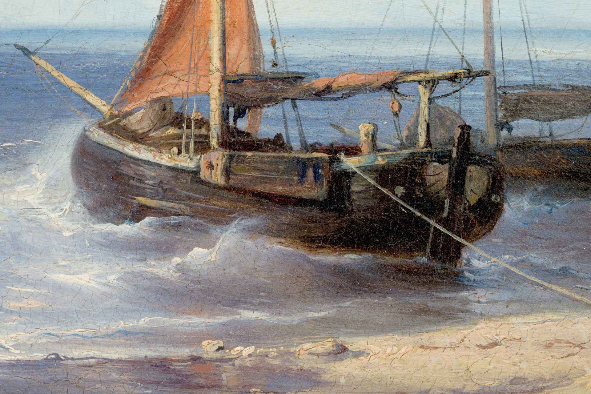 Louis Meijer kunstwerk • schilderij • te koop Vissersboten voor anker in de branding