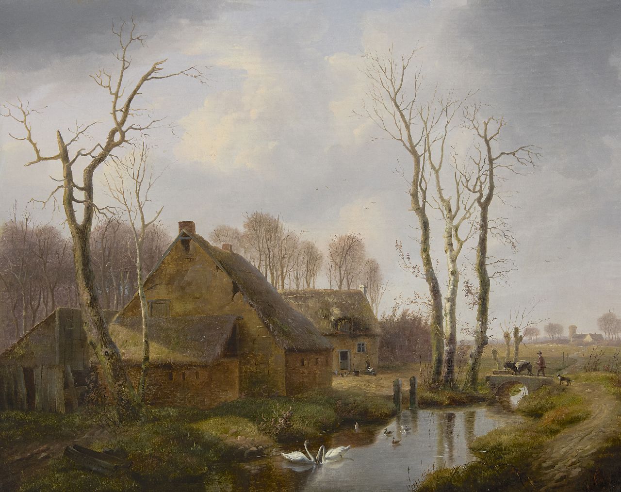 Louis Pierre Verwee kunstwerk • schilderij • voorheen te koop Boerderij met landvolk en dieren