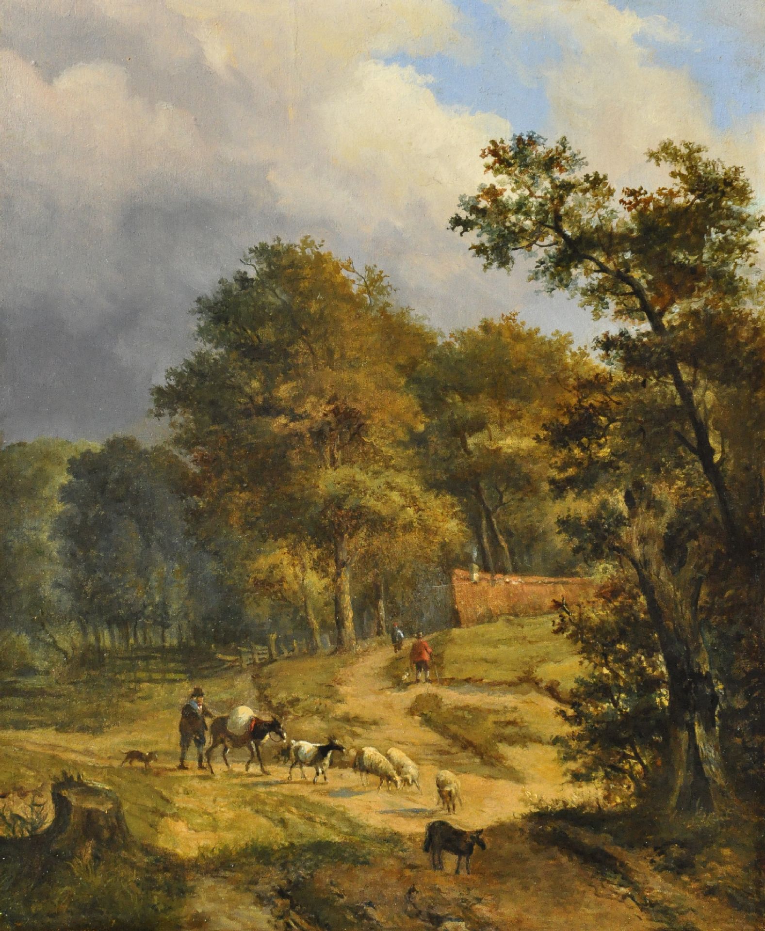 Louis Pierre Verwee kunstwerk • schilderij • voorheen te koop Herder met vee op een bospad