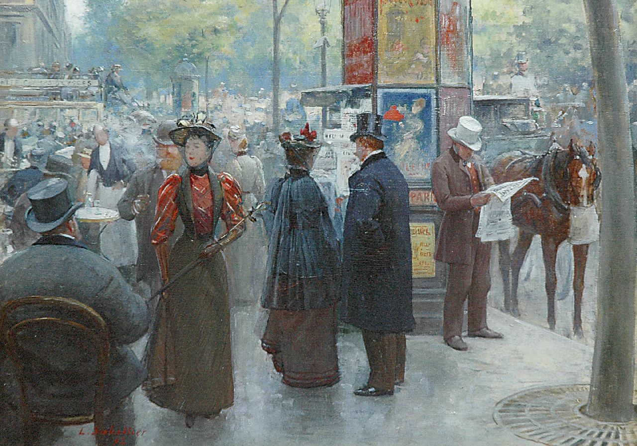 Louis Rémy Sabattier kunstwerk • schilderij • voorheen te koop Op de Boulevard des Champs Elysées, Parijs