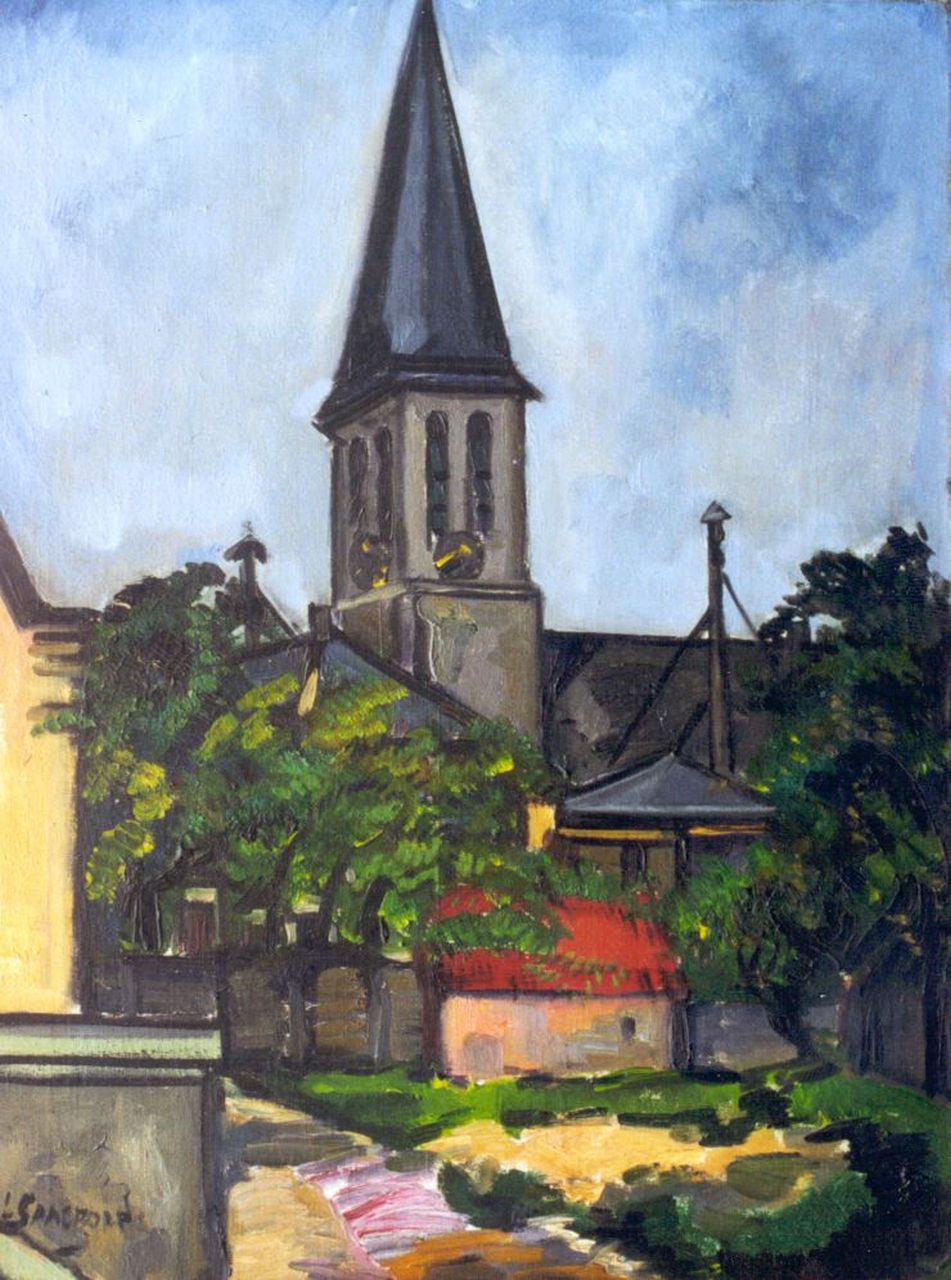Louis Saalborn kunstwerk • schilderij • voorheen te koop Dorpsgezicht met kerk