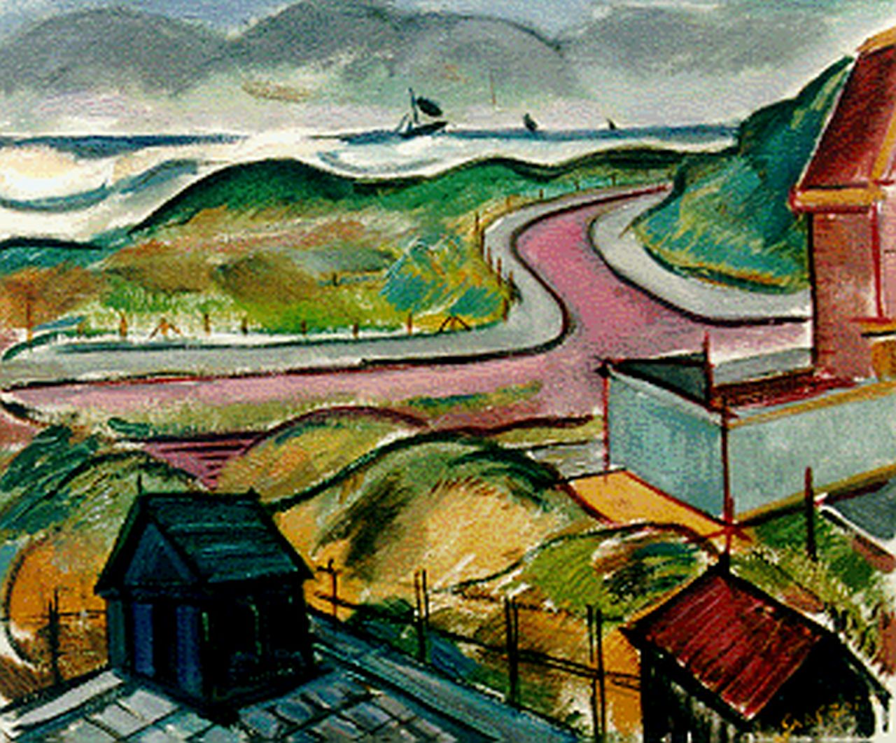 Louis Saalborn kunstwerk • schilderij • voorheen te koop Kustweg door de duinen