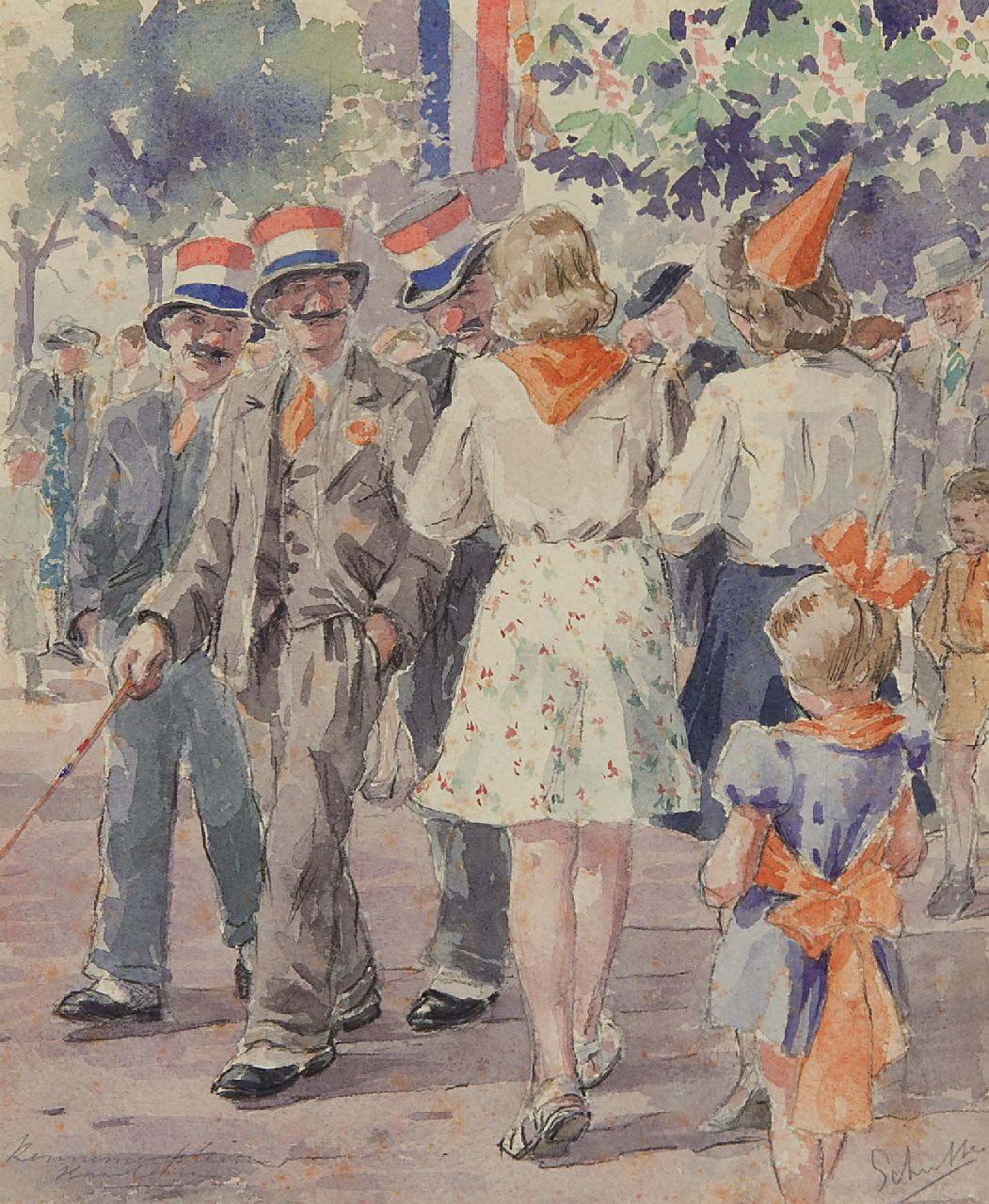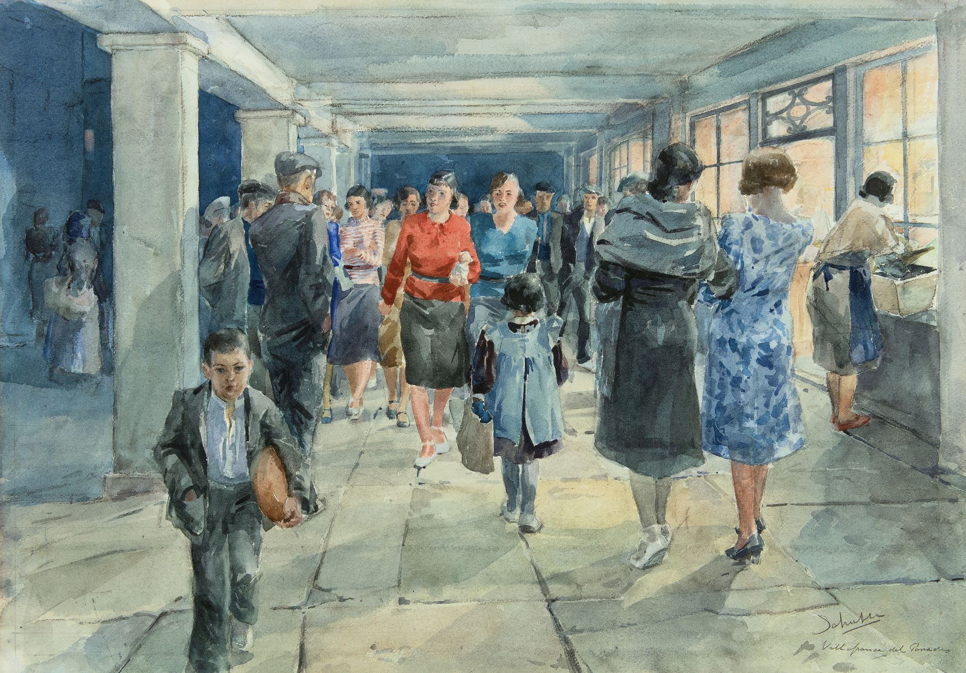 Parken, markten en interieurs met talrijke figuren waren de specialiteit van de Haarlemse schilder Louis Schutte. Zijn grote inspirator was de impressionist H.J. Wolter, van wie hij tussen 1925 en 1930 les kreeg op de Amsterdamse Rijksacademie. Op diens aanraden maakte de schilder na 1929 verschillende studiereizen naar Wenen en Salzburg. Daar schilderde hij het stadsleven en maakte hij honderden schetsen en studies waaruit hij in de jaren daarna rijkelijk kon putten.