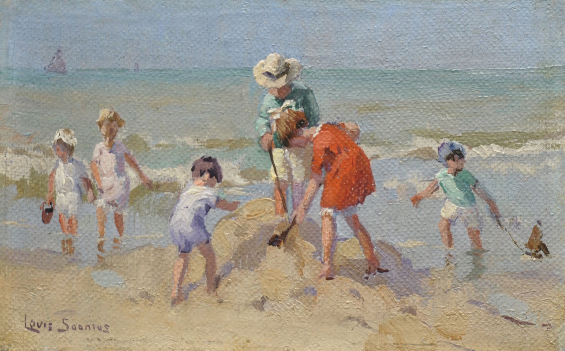 Louis Soonius kunstwerk • schilderij • voorheen te koop Spelende kinderen op het strand