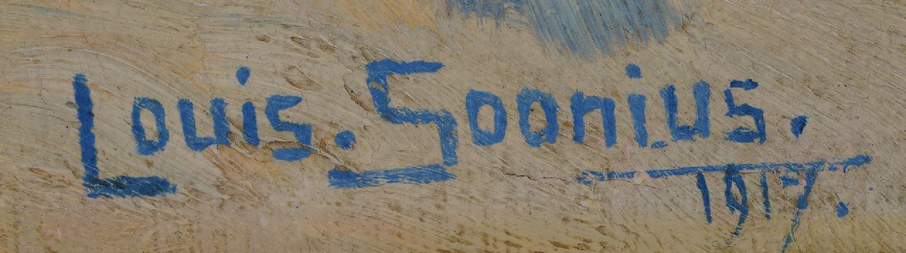Louis Soonius is bij een breed publiek geliefd als schilder van zonnige, kleurige strandgezichten met figuren en van haven- en zeegezichten. Zijn bron van inspiratie was de stad Den Haag en omgeving, waar hij met een korte onderbreking zijn hele leven woonde. Soonius bezocht ook regelmatig het nabijgelegen Katwijk, en in het mondainere Scheveningen schilderde hij het zomerse strandvermaak met spelende kinderen en badgasten. Hij was lid van de Haagse Kunstkring.