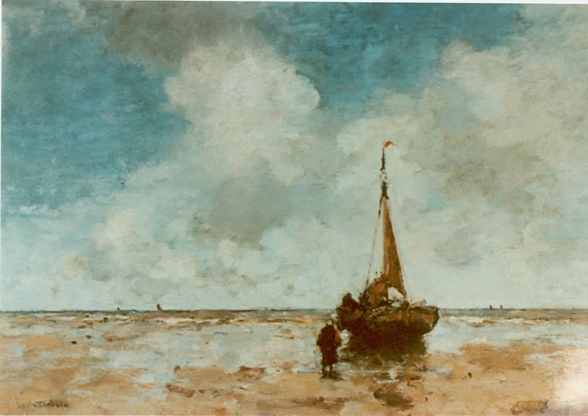 Louis Stutterheim kunstwerk • schilderij • voorheen te koop Bomschuit op het strand