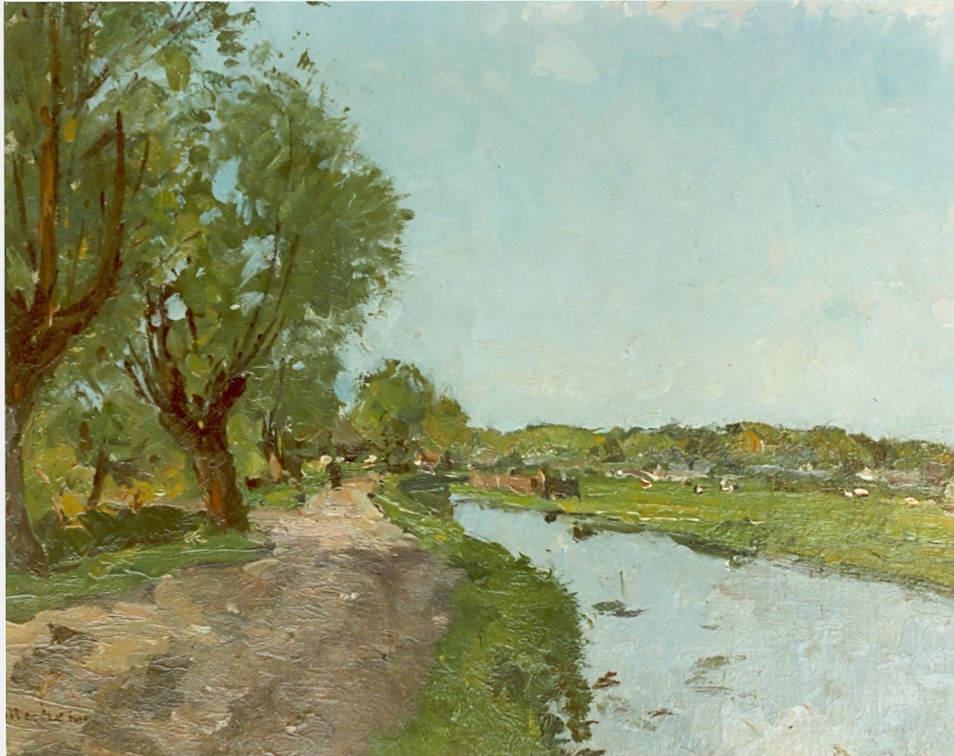 Louis Stutterheim kunstwerk • schilderij • voorheen te koop Landweg langs een vaart
