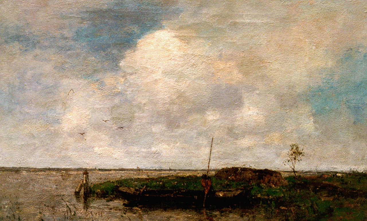 Louis Stutterheim kunstwerk • schilderij • voorheen te koop Polderlandschap met punterende boer