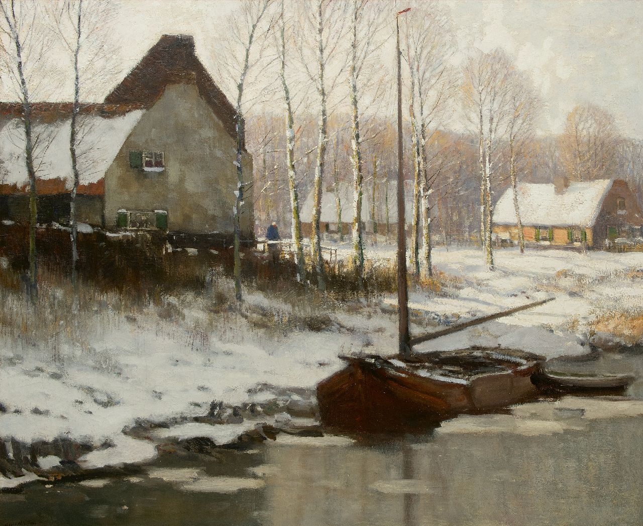 Louis van Soest kunstwerk • schilderij • te koop Besneeuwde rivieroever