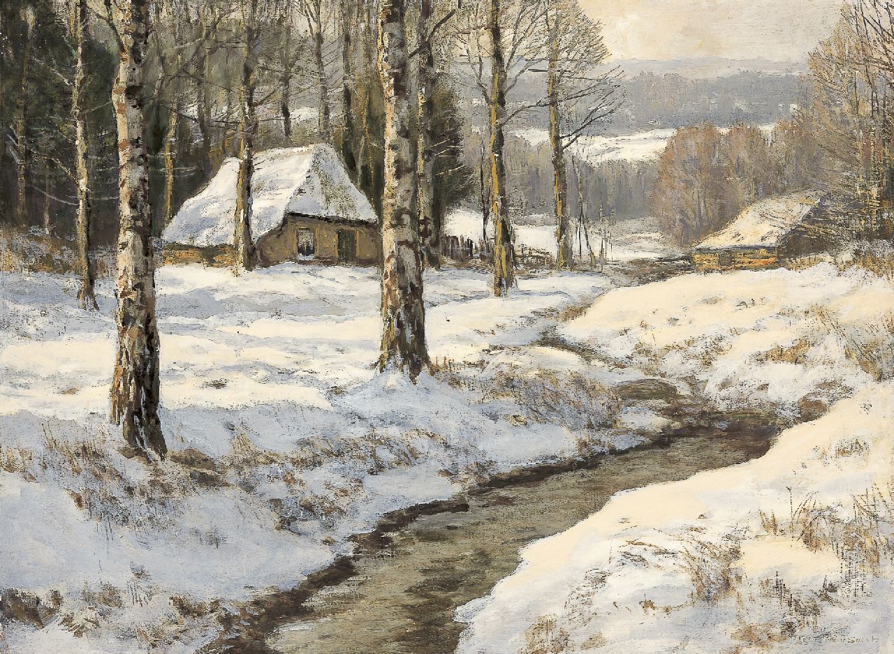 Louis van Soest kunstwerk • schilderij • voorheen te koop Boerderij in winters landschap