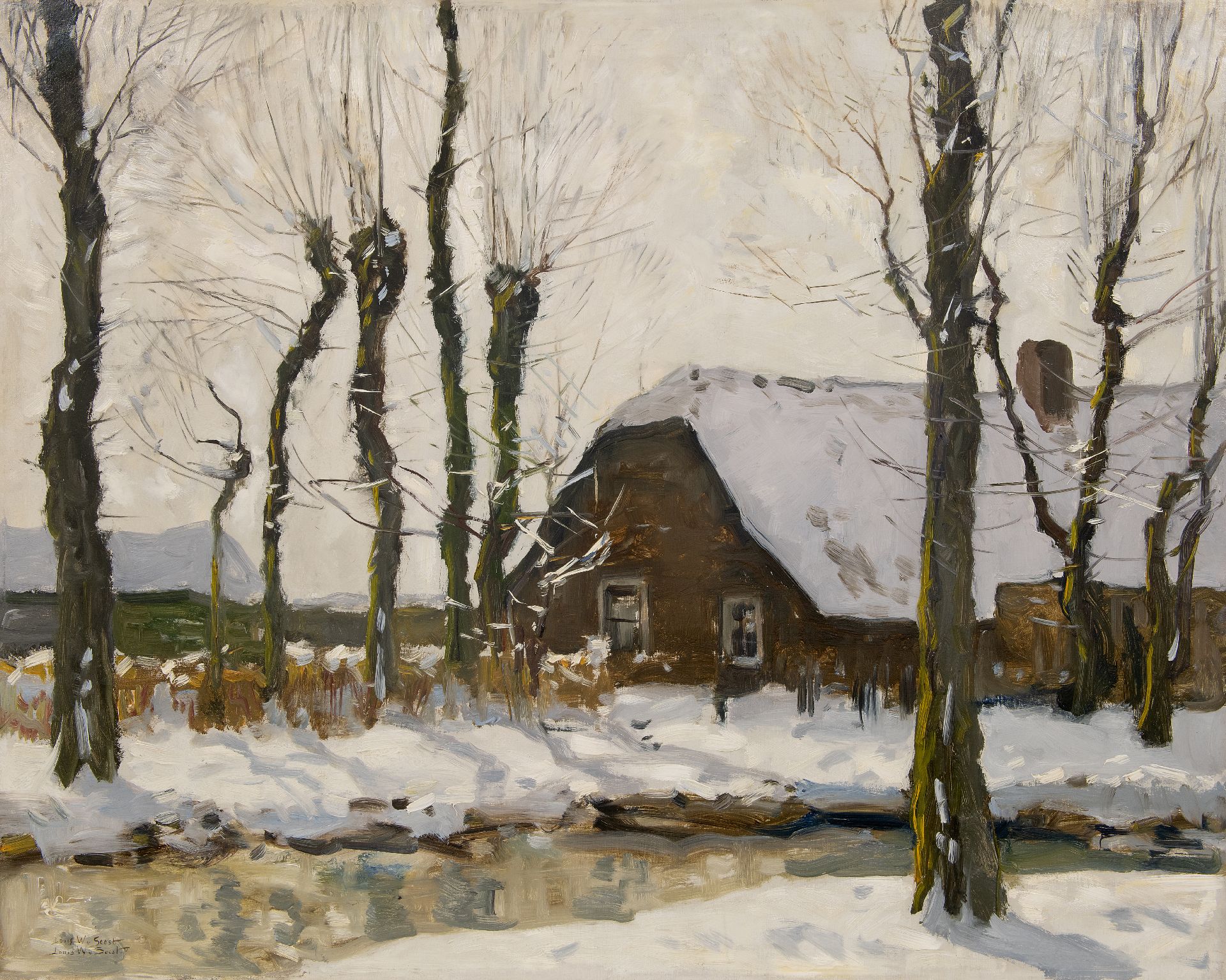 Louis van Soest kunstwerk • schilderij • te koop Boerenerf in de sneeuw