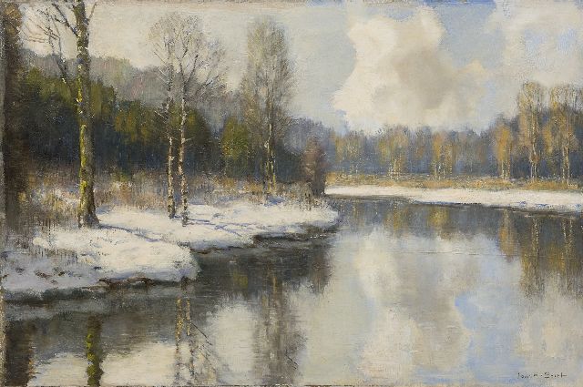 Louis van Soest is een schilder van de Veluwezoom en wordt vaak in één adem genoemd met de Veluwse schilders Jan van Vuuren en Edzard Koning, met wie hij bevriend was. Een echt Hollands impressionist toont hij zich in zijn sneeuwlandschappen. Nu eens schildert hij de natuur bedekt met een wit donzen kleed met blauwige schaduwen, soms doorgloord met een waas van licht. Dan weer schildert hij de wegdooiende sneeuw met watervegen en kale aarde vlakken van vaal groen en bruin. Van Soest gaf onder anderen schilderles aan Koningin Wilhelmina.