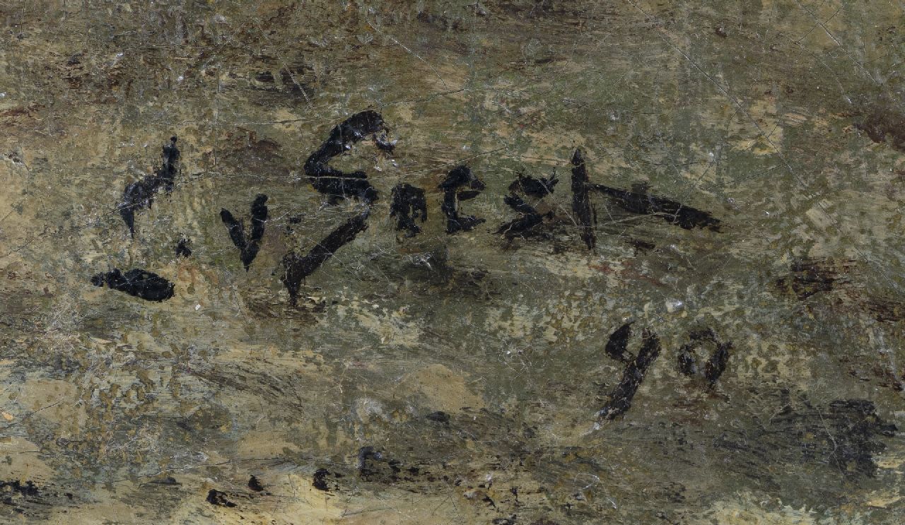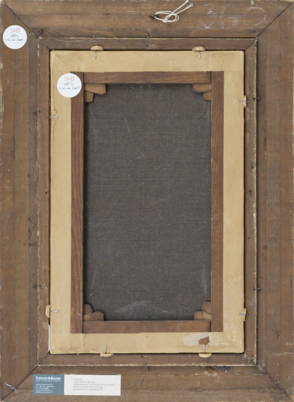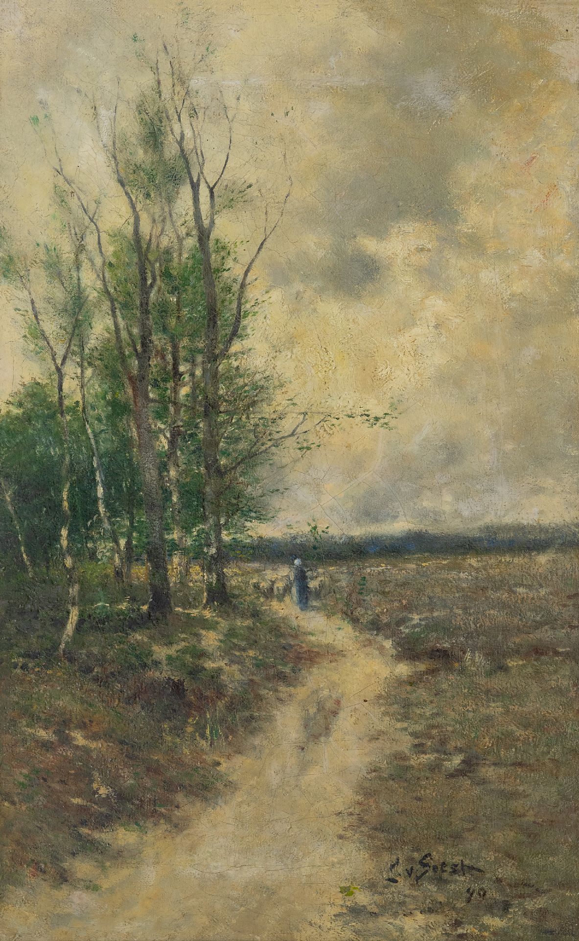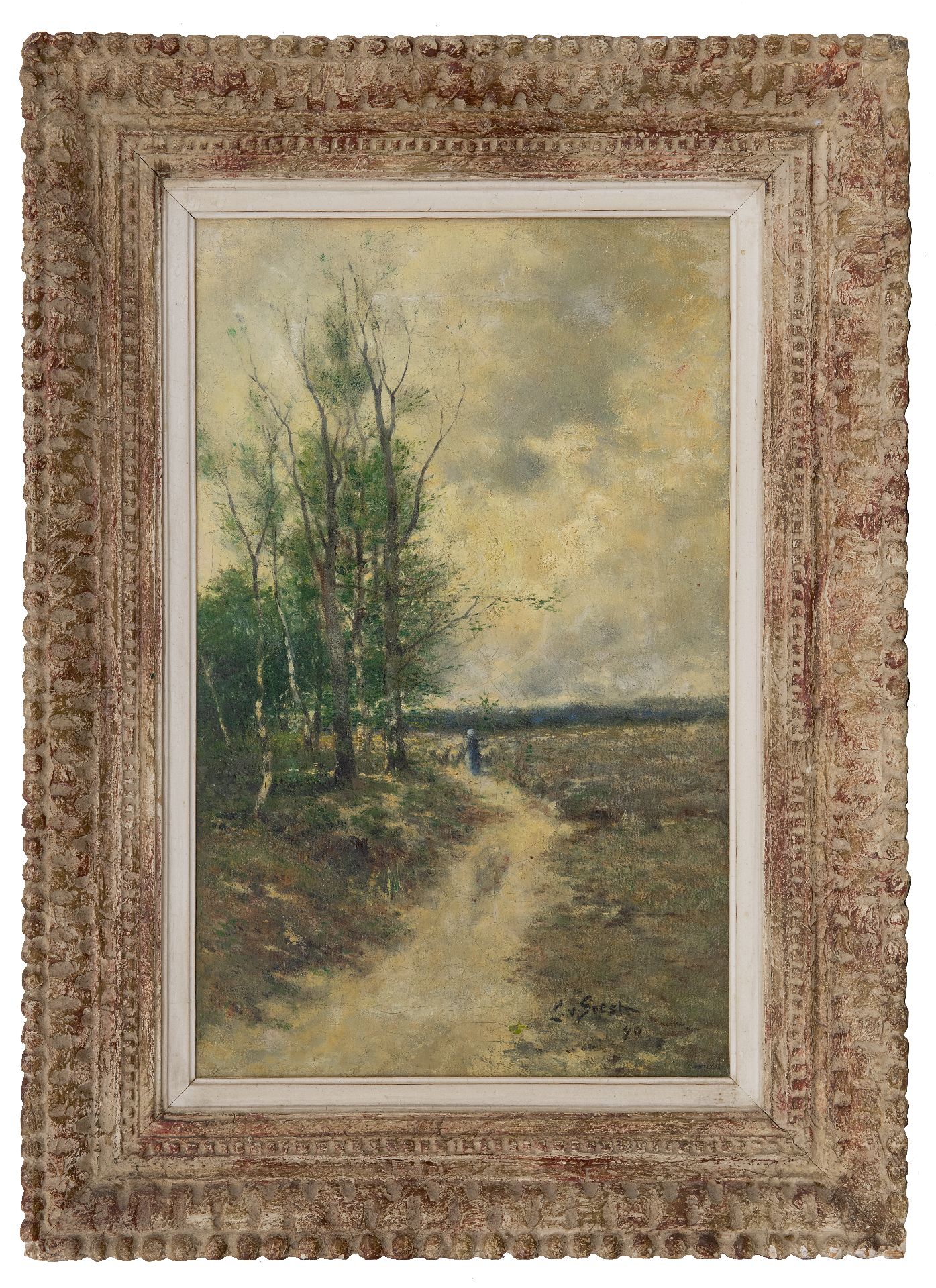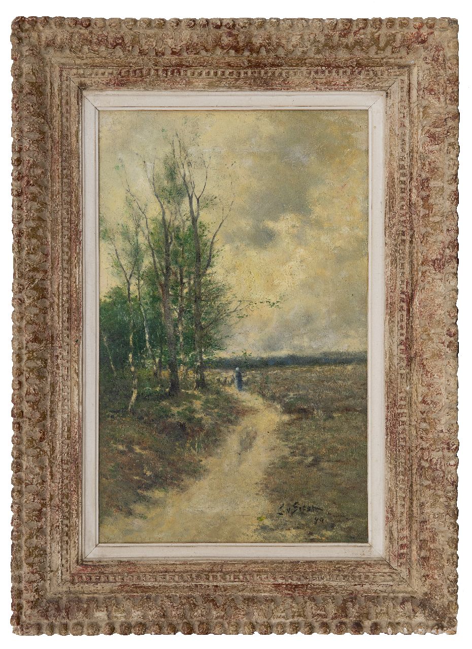 Louis van Soest kunstwerk • schilderij • voorheen te koop Schapenhoedster met kudde op een heidepad