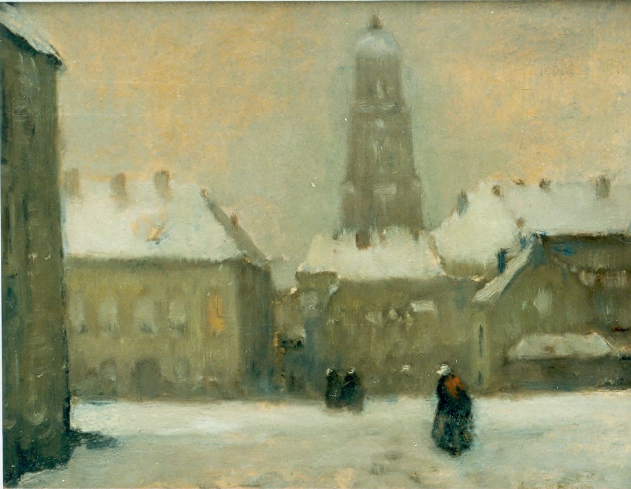 Louis van Soest kunstwerk • schilderij • voorheen te koop Stadsplein in de winter