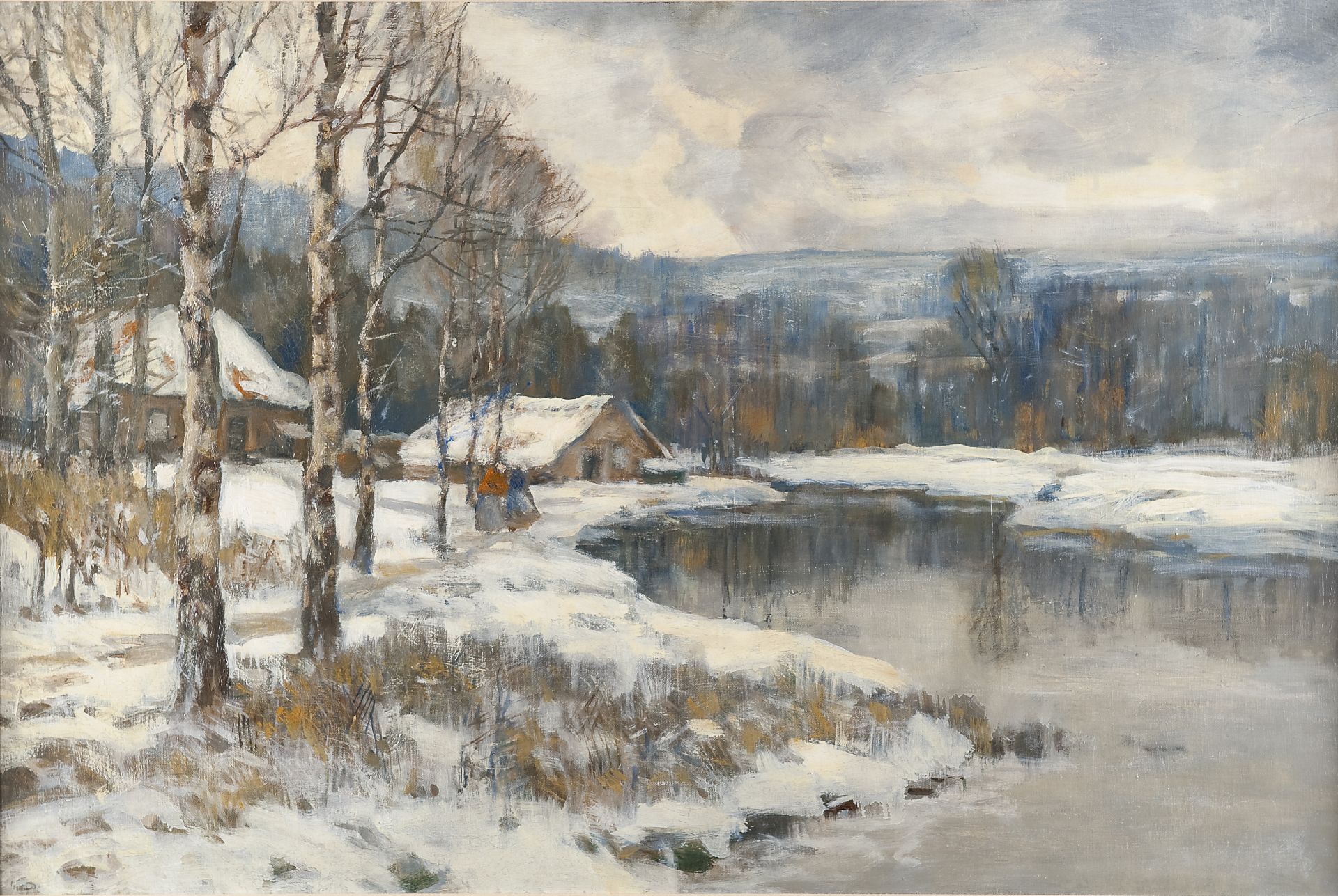 Louis van Soest kunstwerk • schilderij • te koop Veluws winterlandschap met figuren